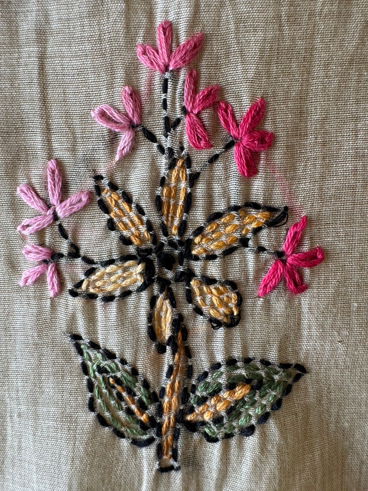 Flowers with Pigeon embroidered pattern, Beautifully made with Kantha work, Multi coloured threads used.
