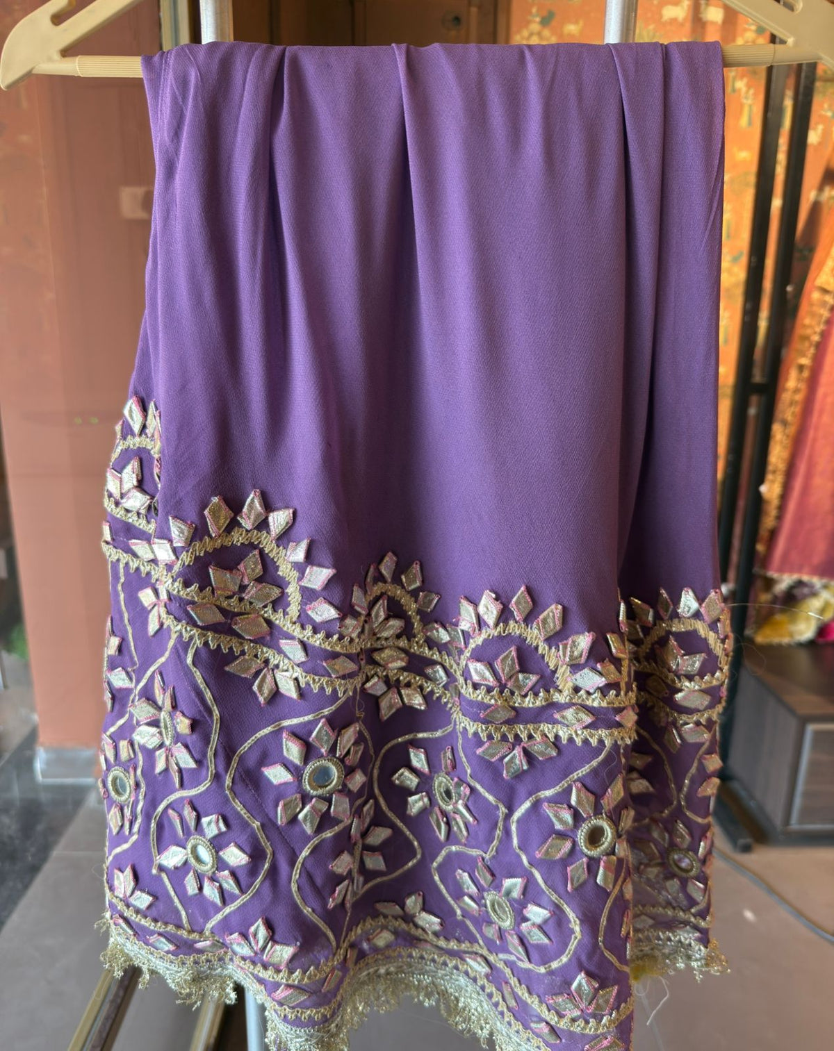 Georgette Dupatta with gotta work on the four sides border edged with Tassel lace.