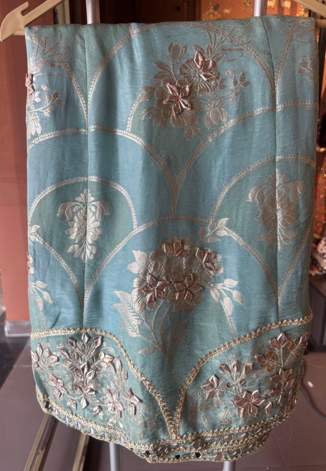 Banarsi Weaved designer dupatta with gotta kinari laces and stitched BANARSI weaved Skirt with Gotta Patti borders enhancing the look of the outfit.