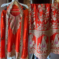 Stitched sharara’s With Beautiful gold Zari embroidery done heavily With paisley motifs.