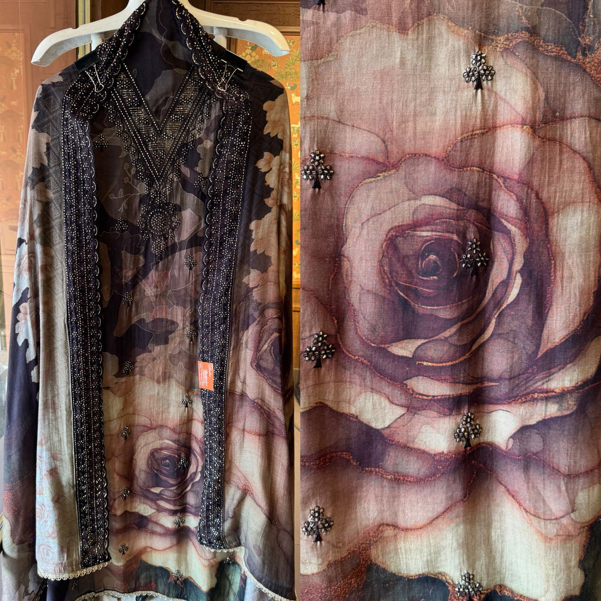 Muslin Dupatta digital printed with embroidered borders on the two longer sides.