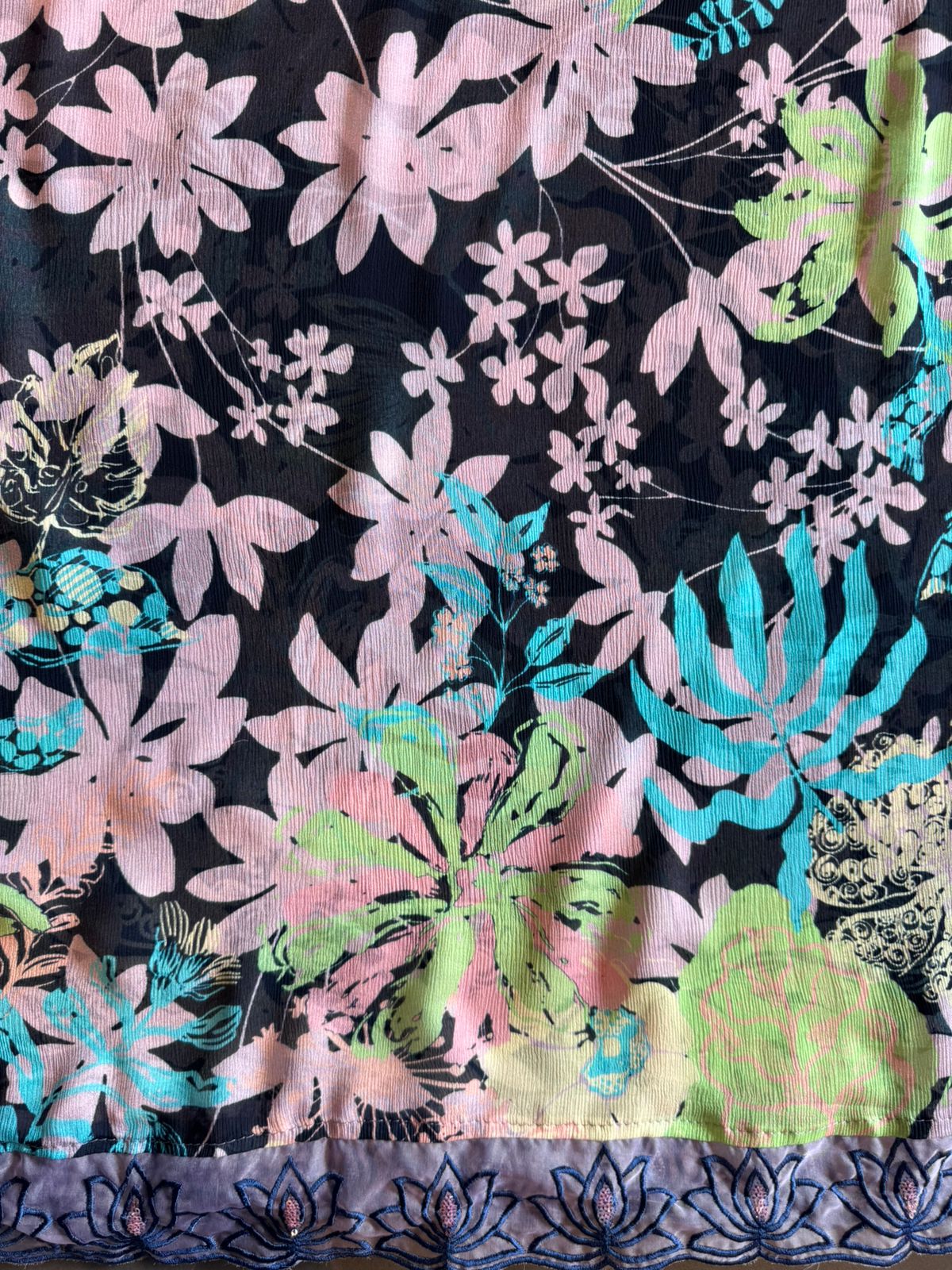 Pure Chinon dupatta digital printed with embroidered floral cutwork border.