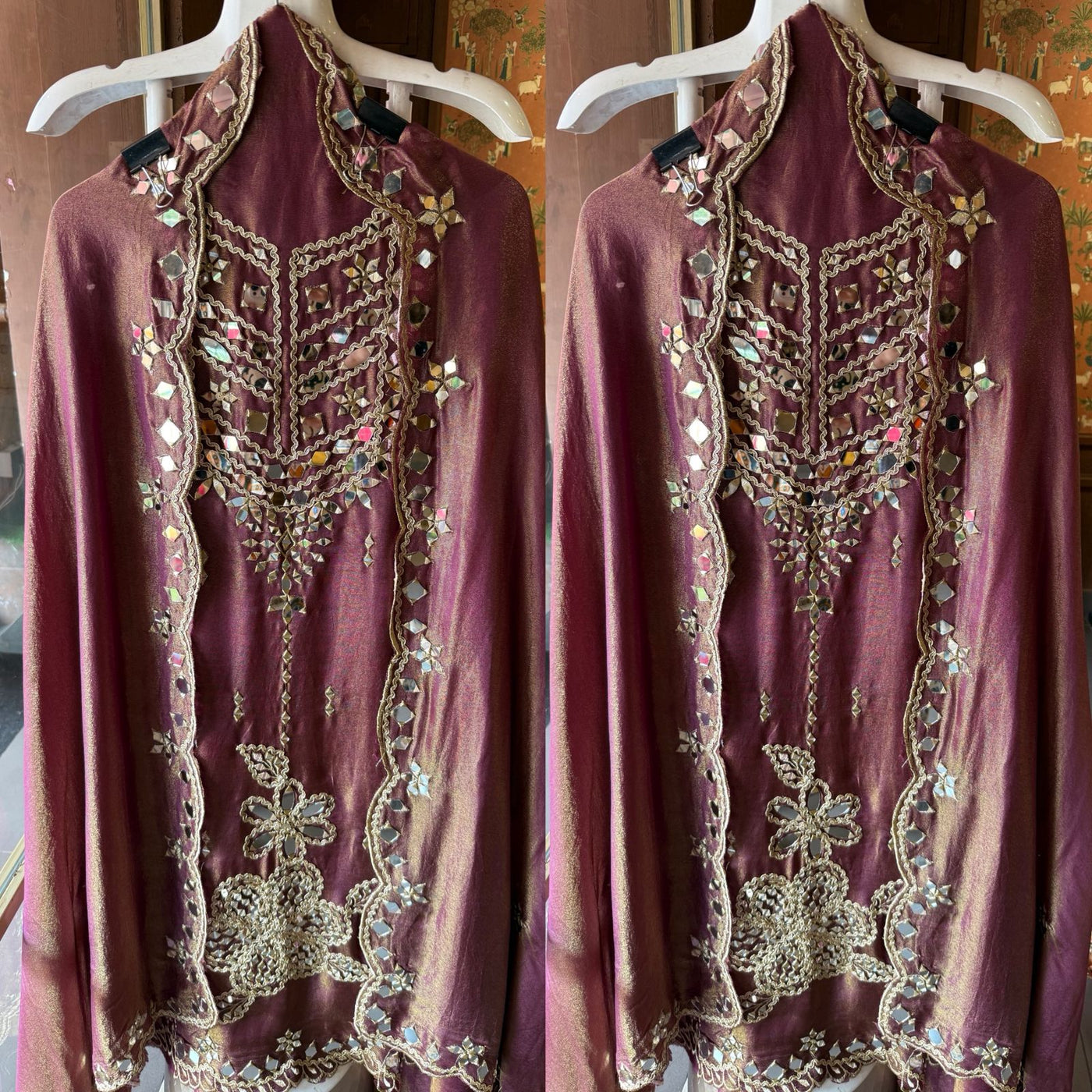 Shimmer tissue Dupatta with Mirror work detailings with Dori scalloped border.