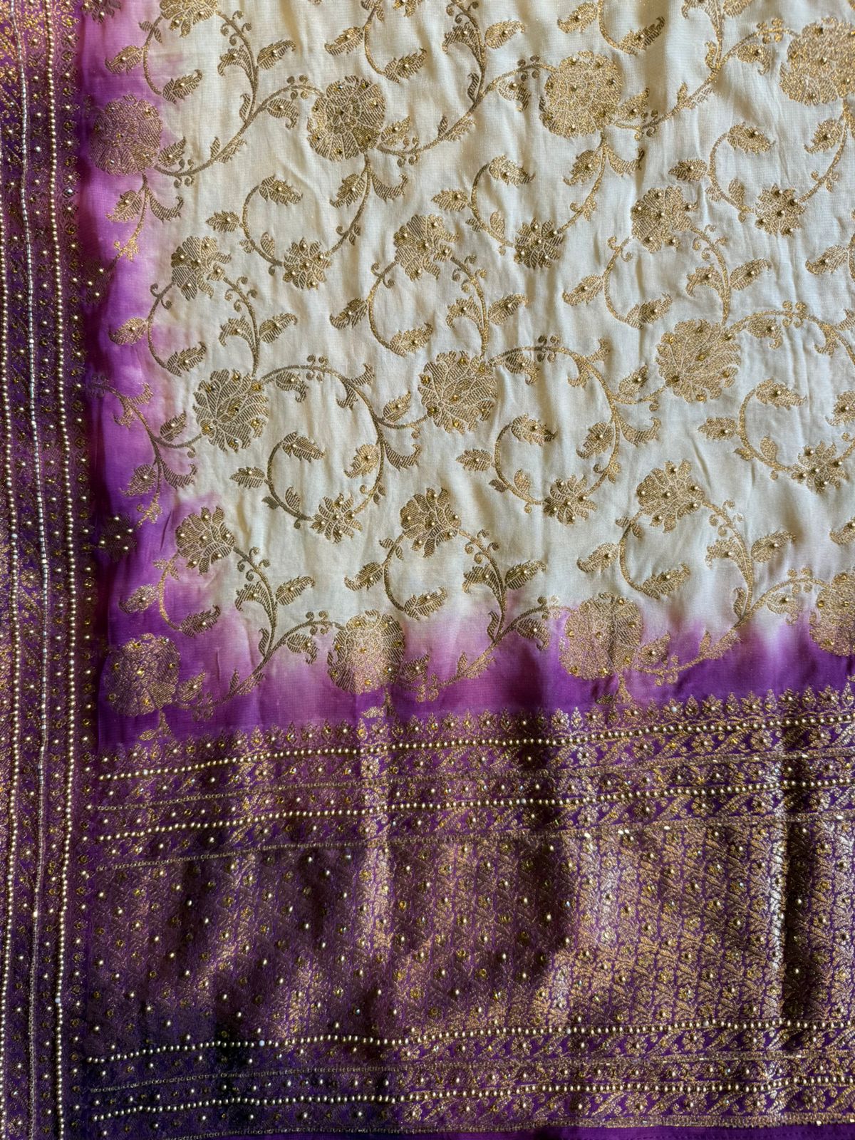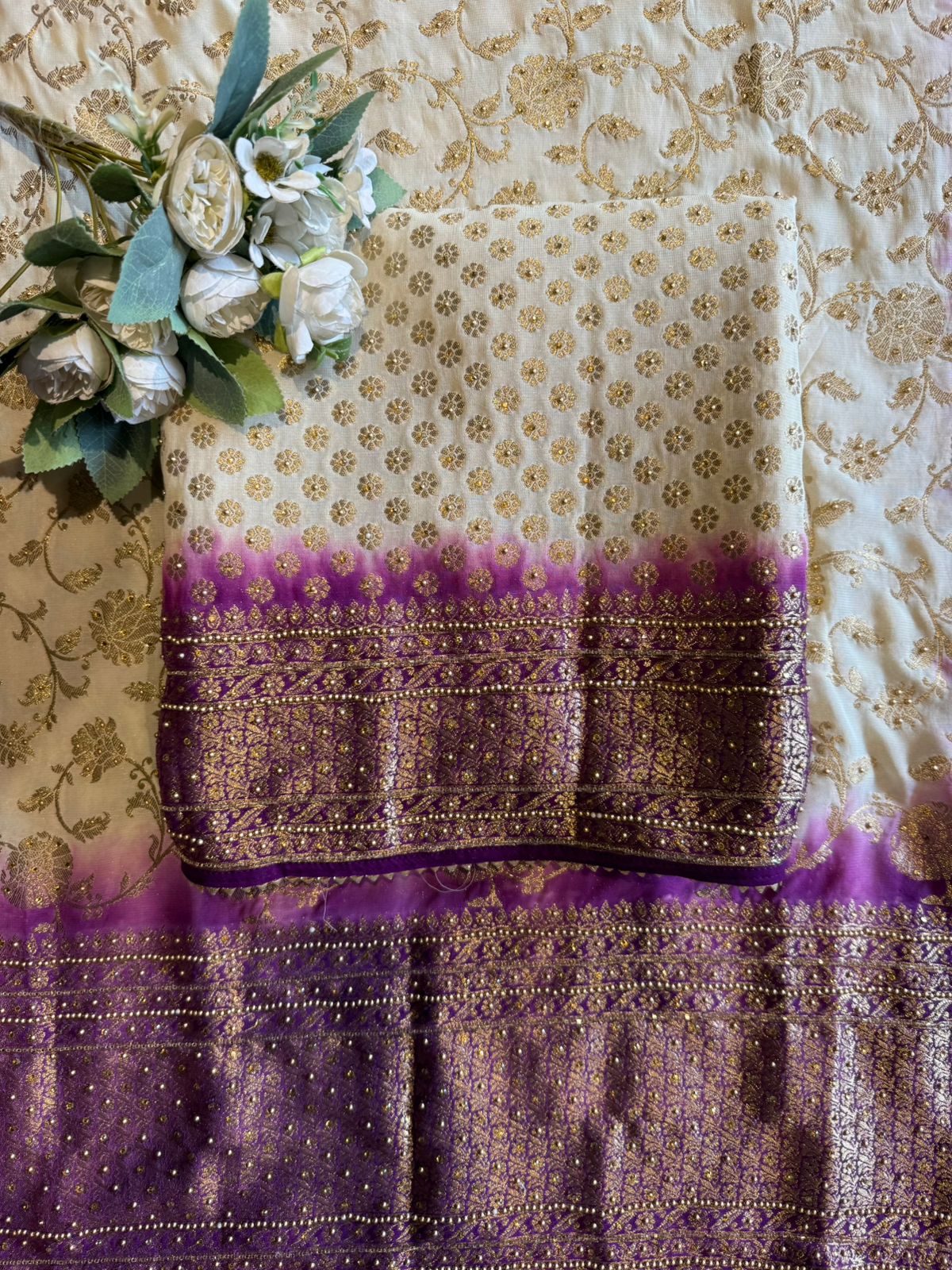 Banarsi Georgette dupatta with Banarsi Weavings On the border highlighted with Swaroski’s.