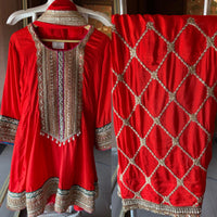 Stitched Silk salwar with Dori and Zari embroidered cross jaal design.