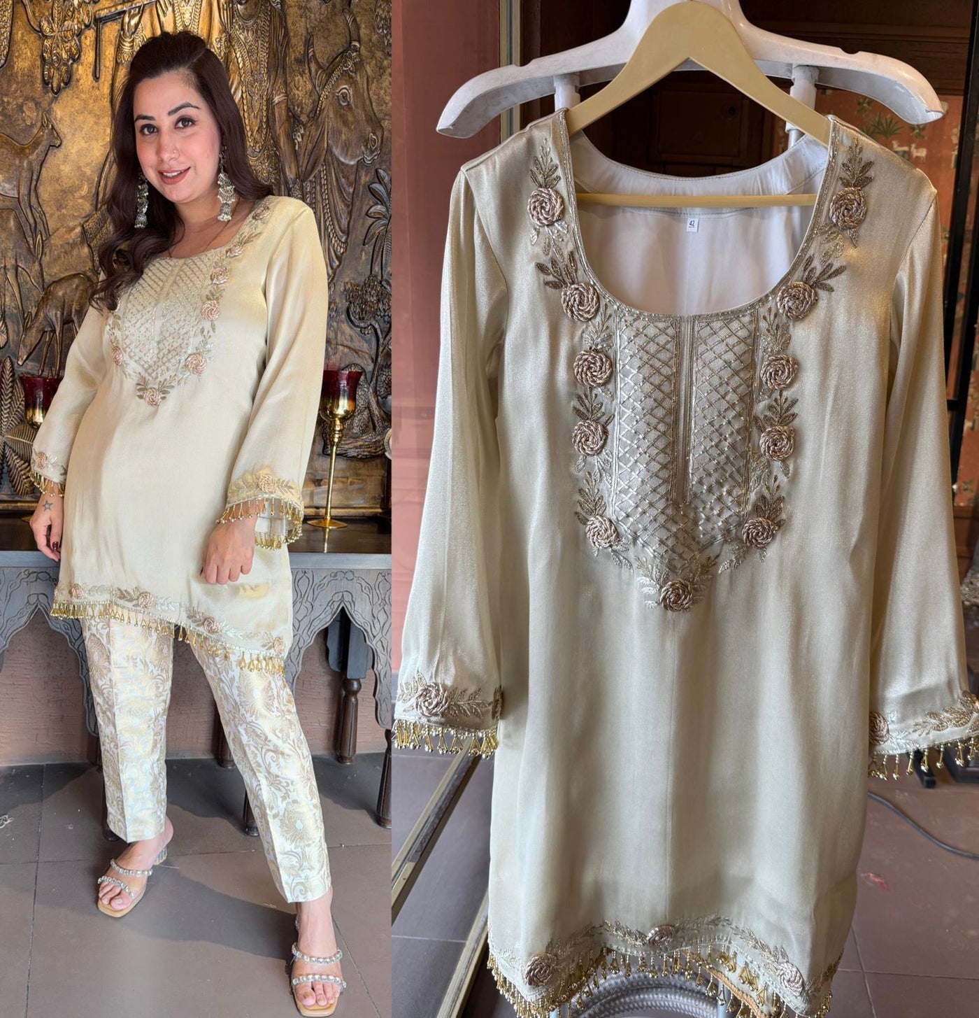 Elegant Embroidered Coord Set In Premium Giraffe tissue fabric