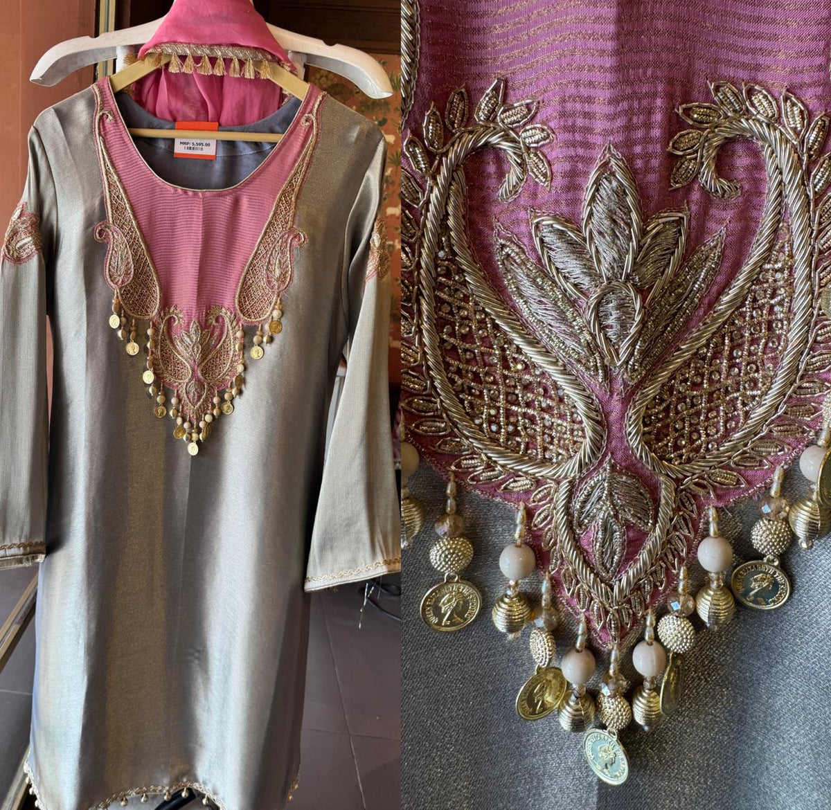Work: Hand Embroidery with Coin & Bead Hanging Details