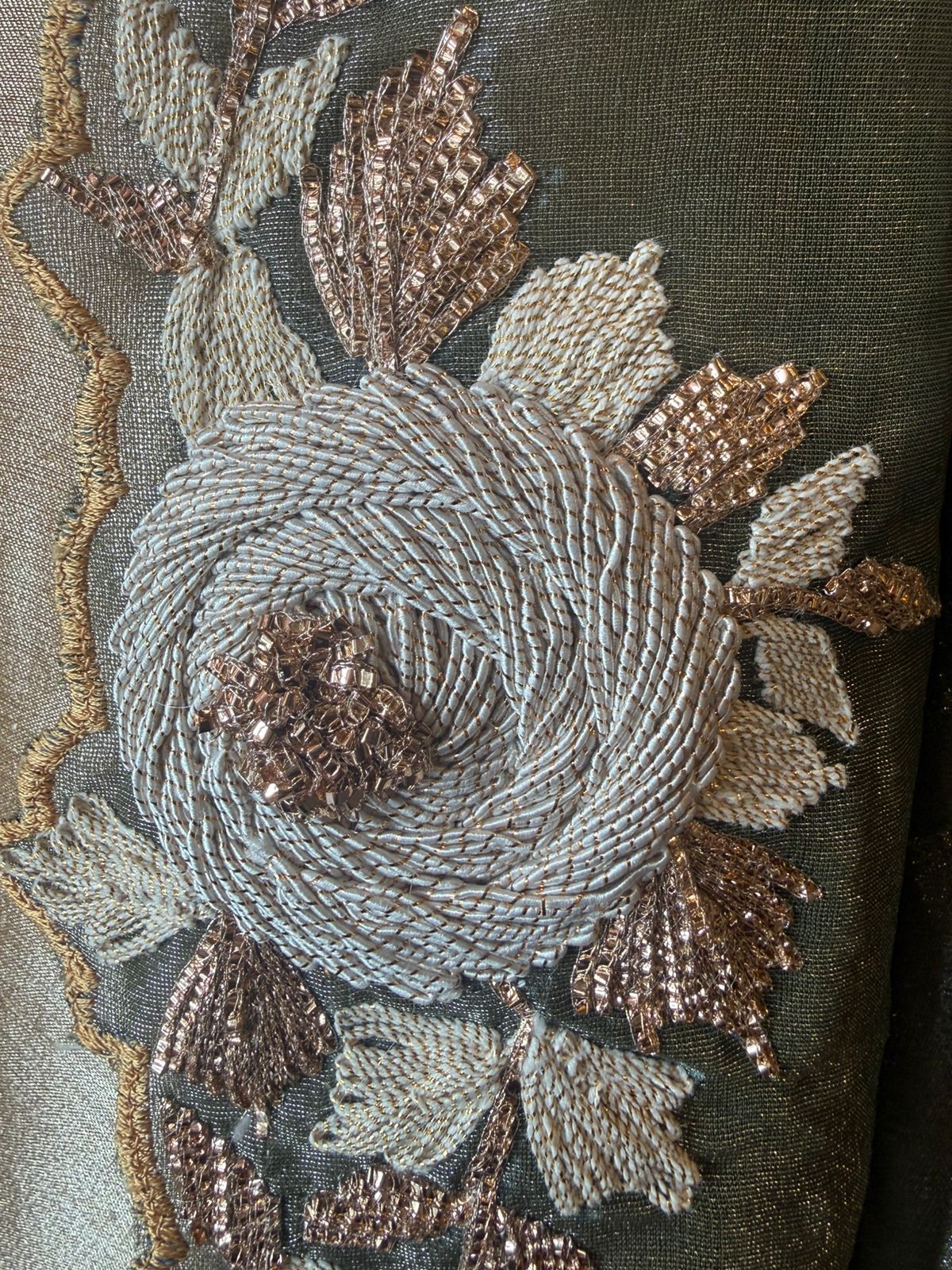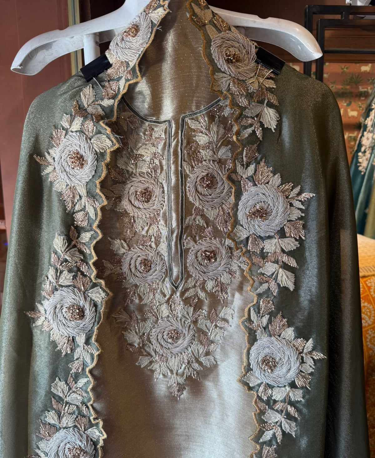 • Heavily adorned with Dori work arranged in a floral pattern