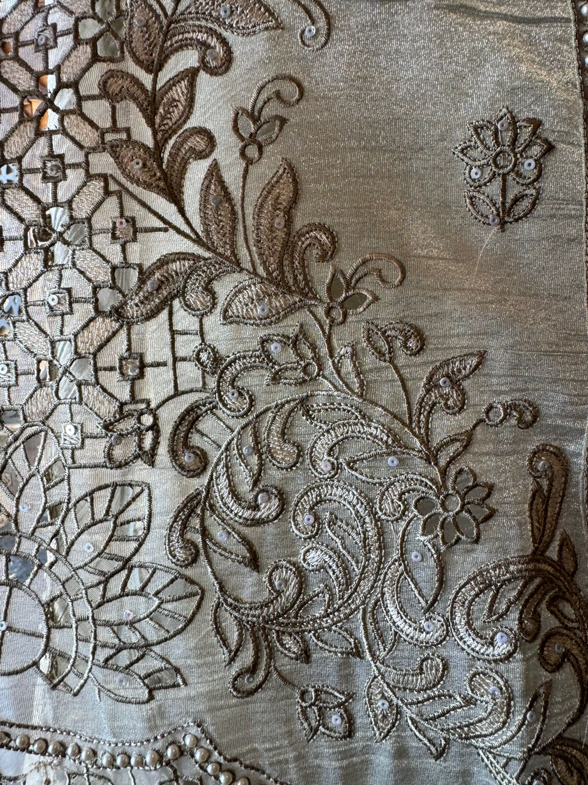 * Dupatta: Crushed tissue Embroidered border dupatta