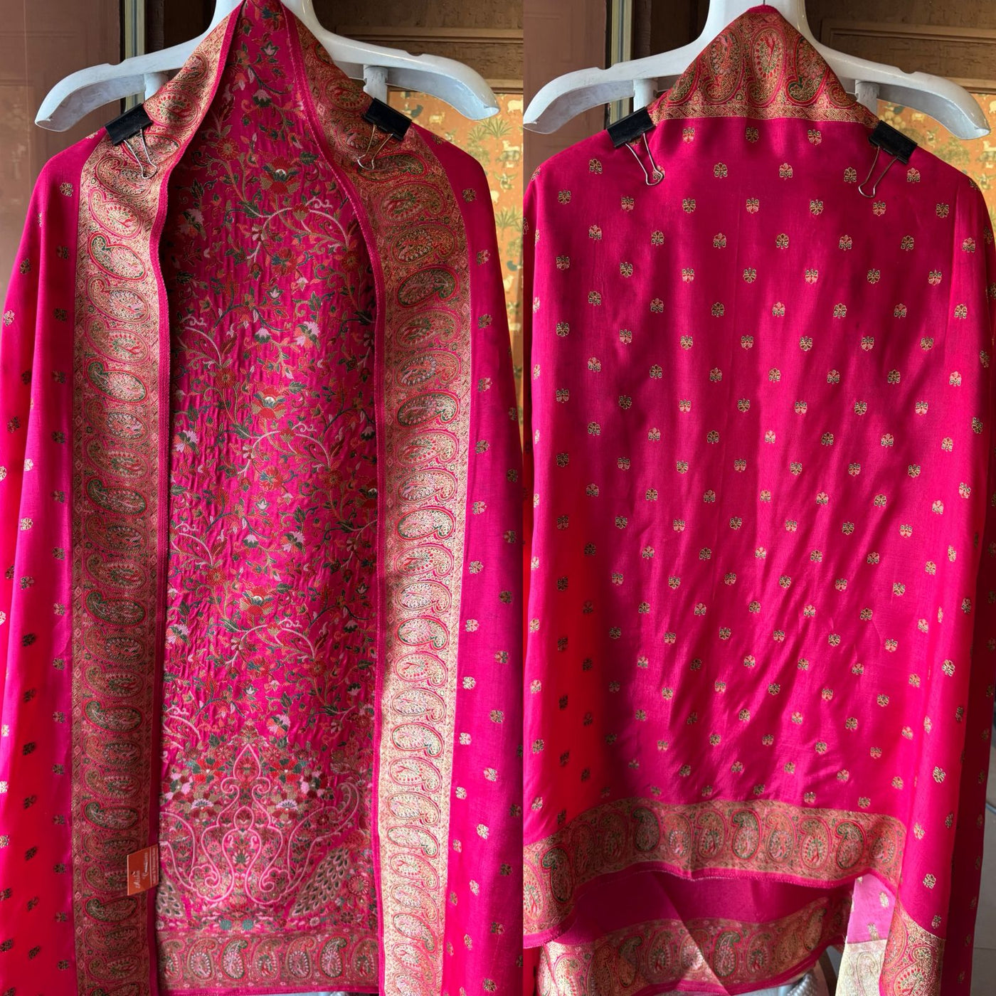 Silk dupatta Very prominent paisley (boteh) border on both long sides.