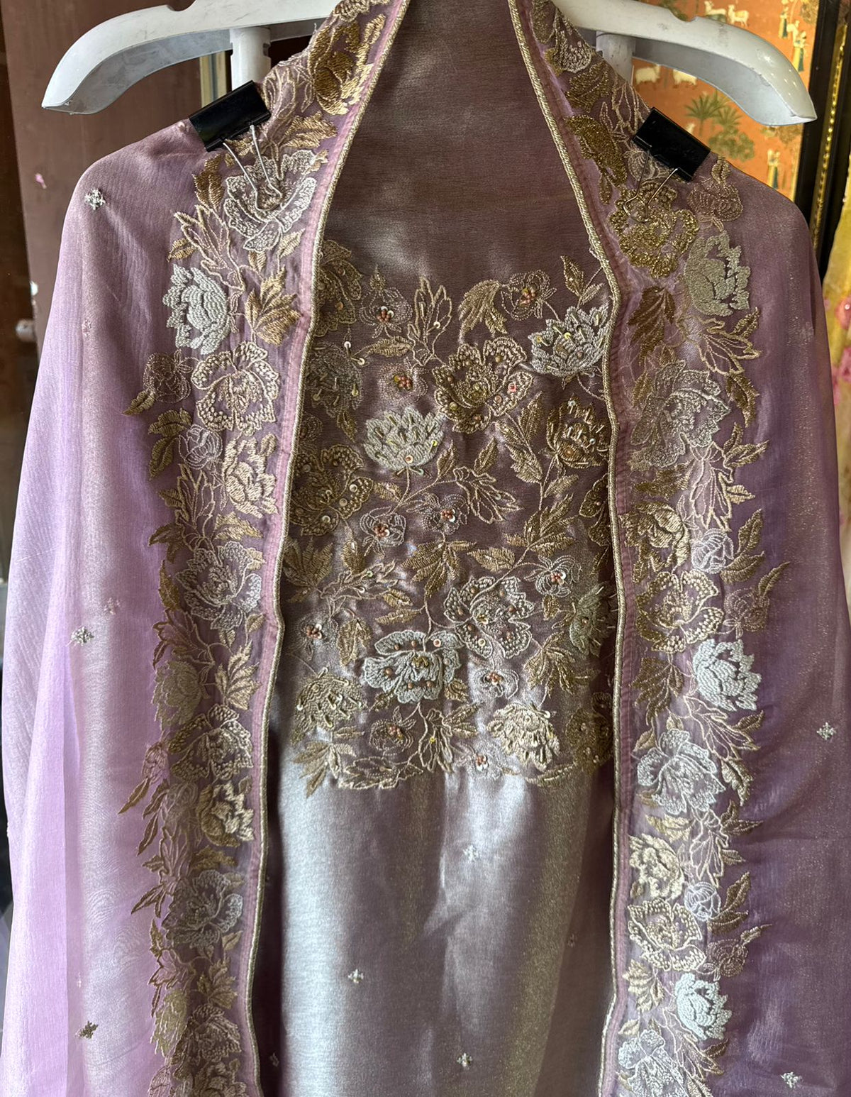 This is a luxurious suit set with elegant embroidery