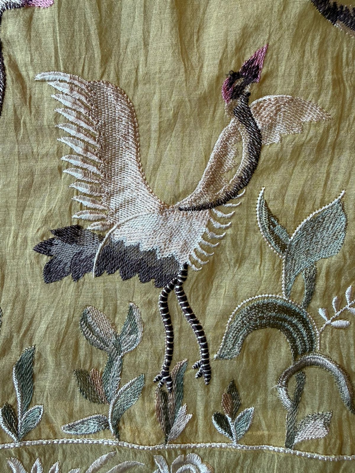 One side has Heavily embroidered border with flamingo 🦩designing done.