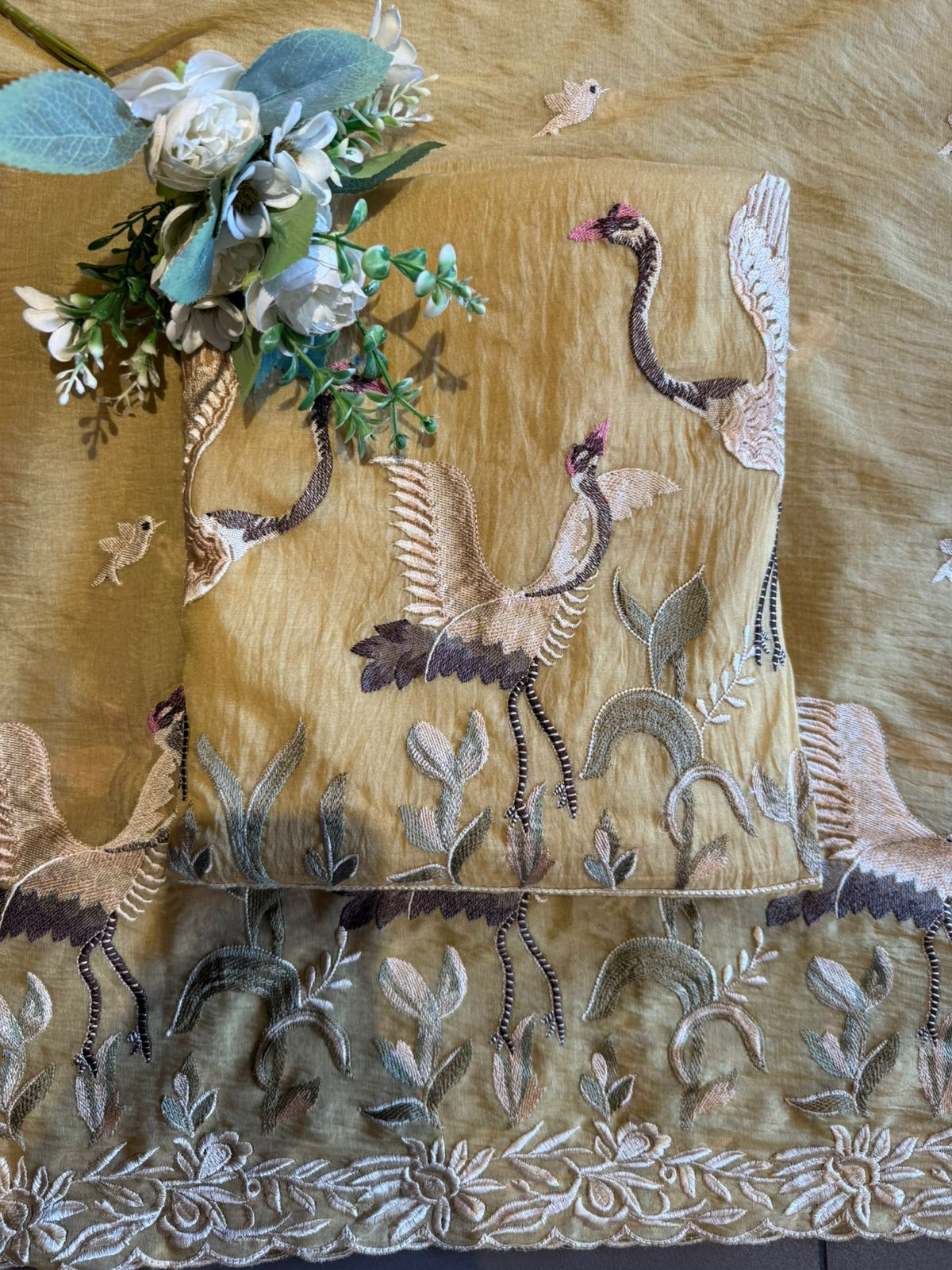 The Hemline has Very elegant flamingo 🦩 Embroidery with Thread embroidered border.