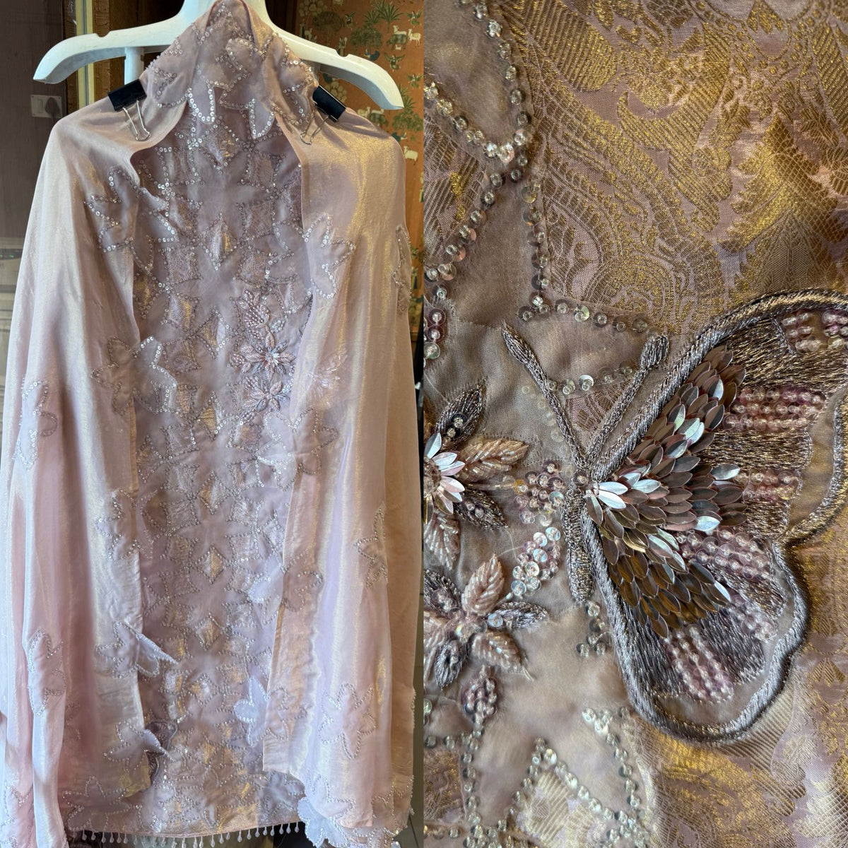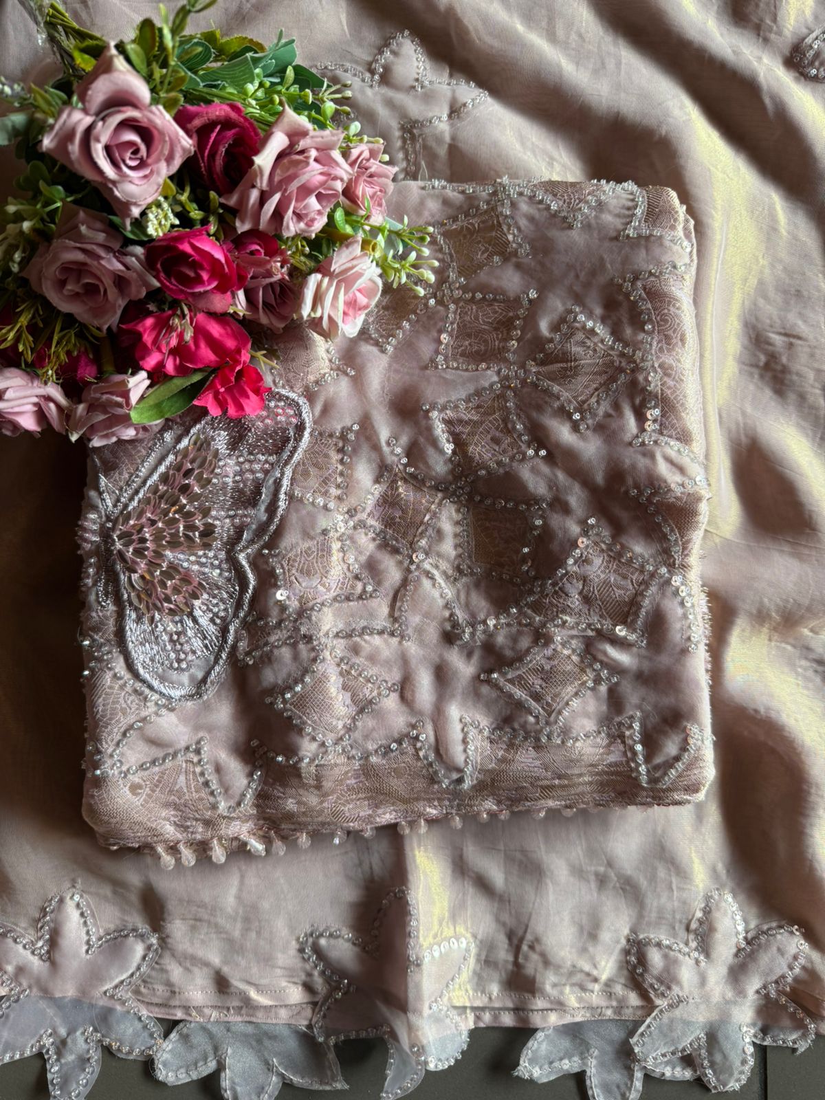 Designer Tissue dupatta full in size with cutwork organza Flower pattern on the four sides border.