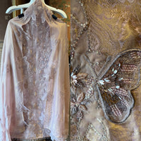 The front cutwork design is all highlighted with Sippi and Cutdana.