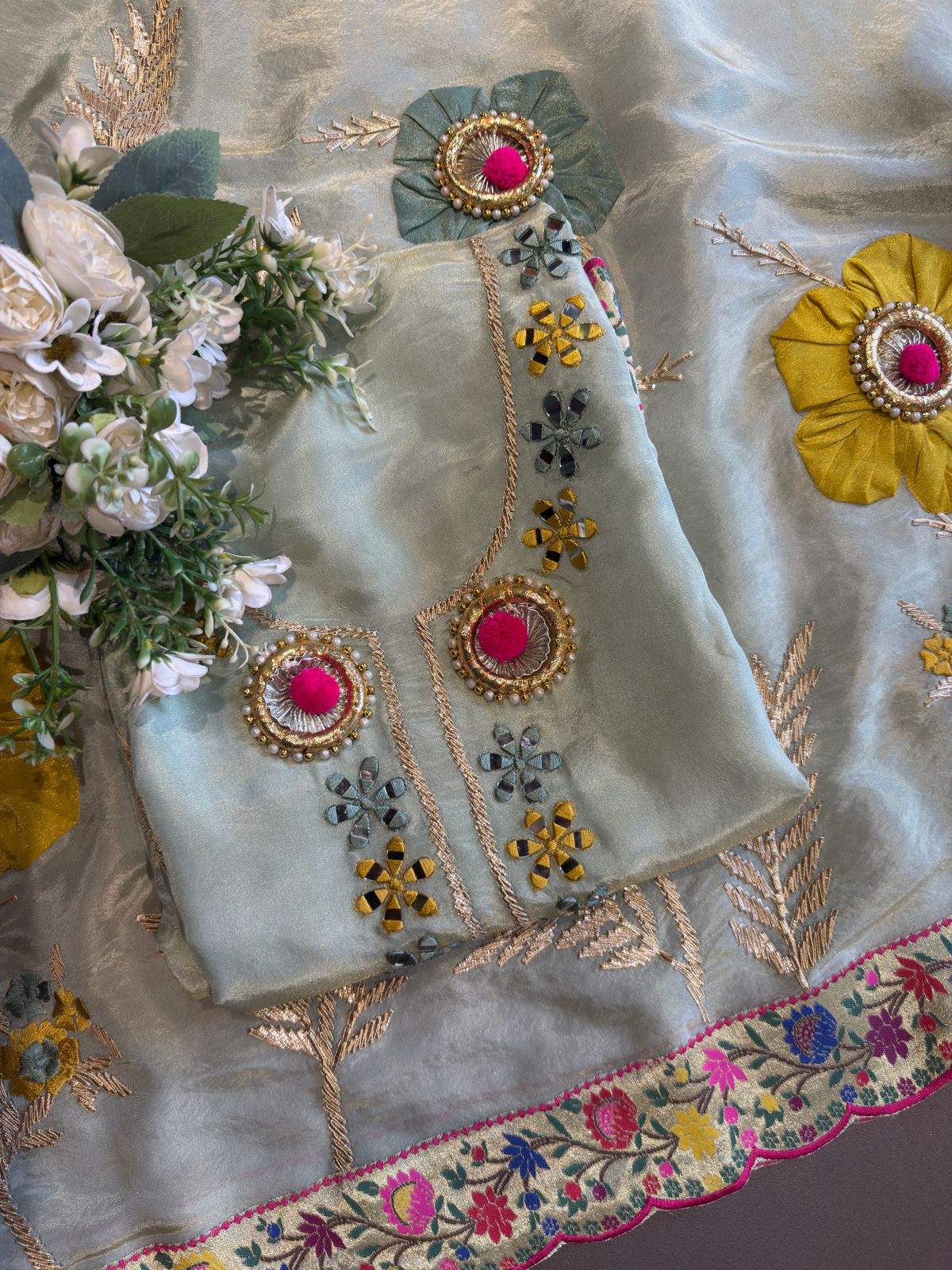 Designer dupatta on tissue with meenakumari weavings with Floral motifs.