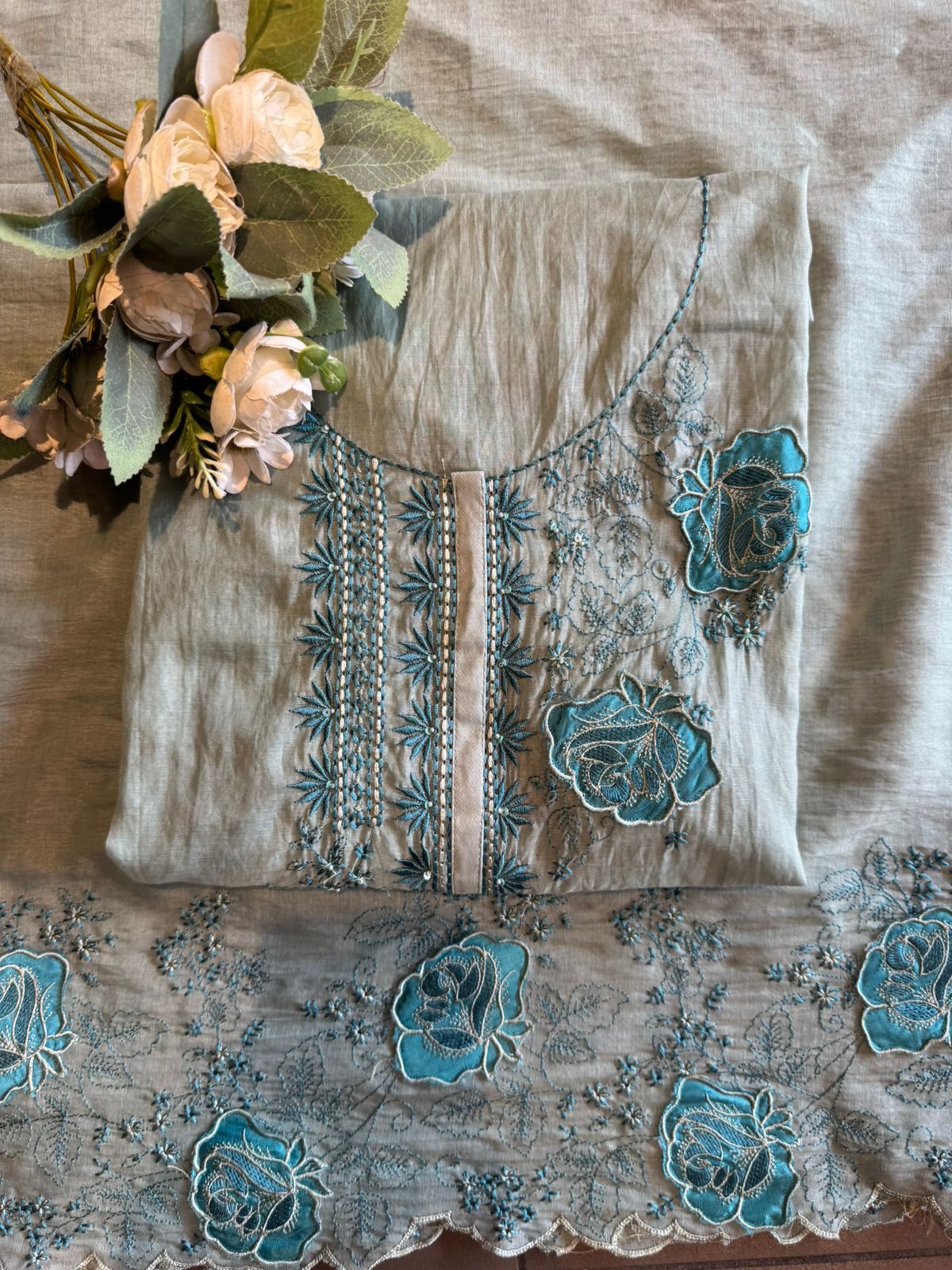 Premium Mul cotton Unstitched suit set with soothing colour tone, lightweight with a soft textured finish.