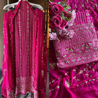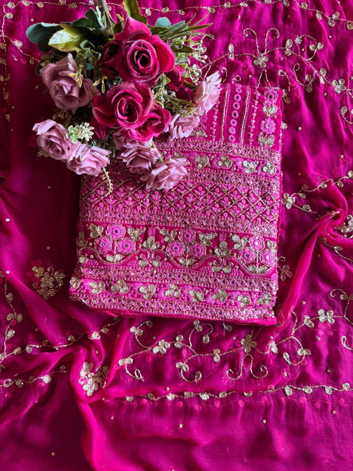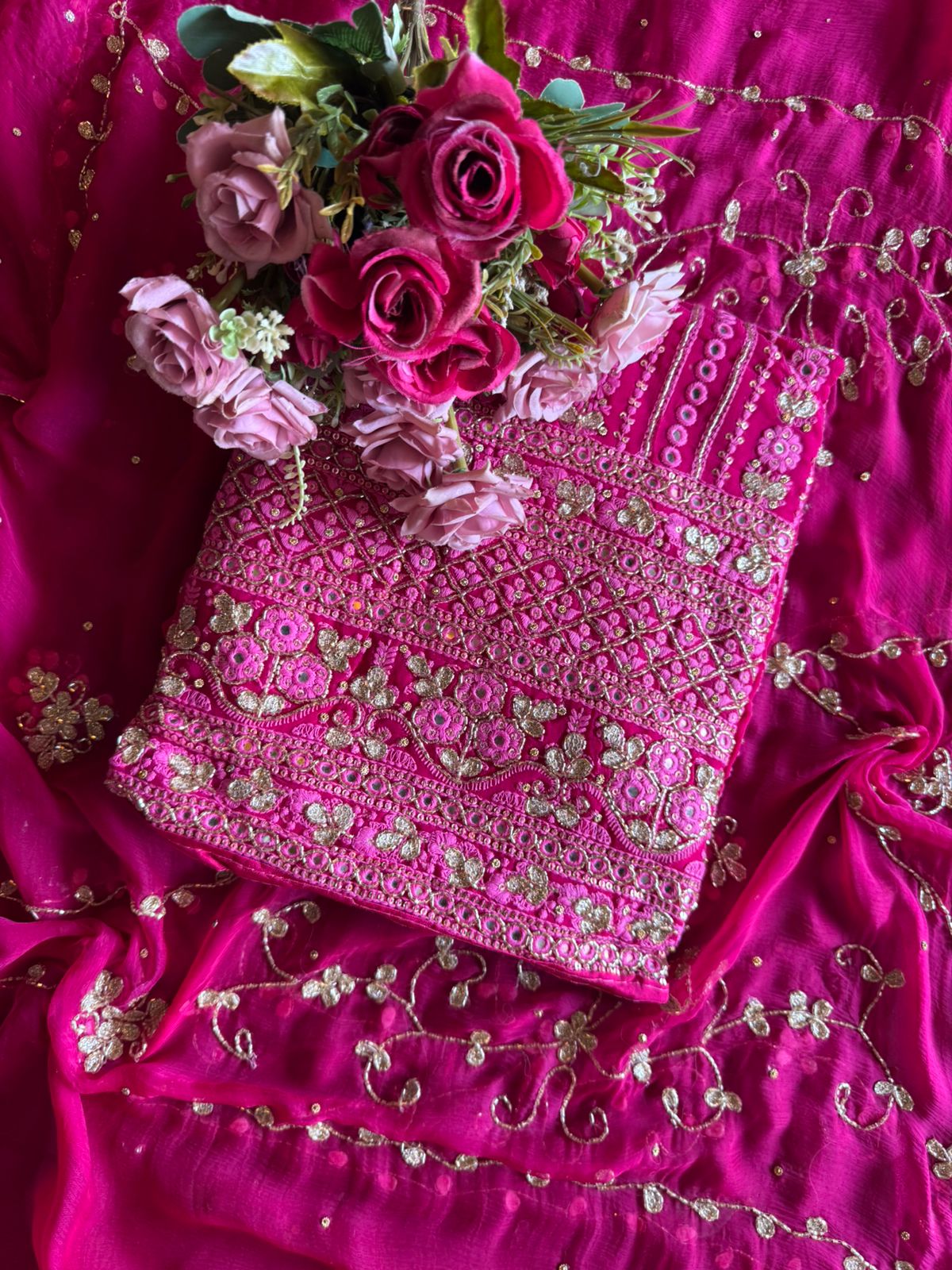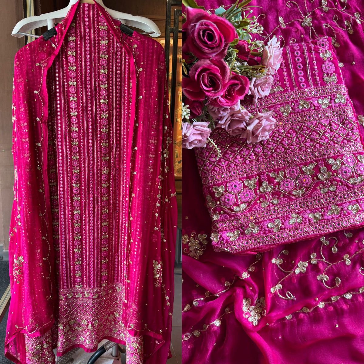 Pure Georgette Lakhnavi shirt (Unstitched) with thread embroidery on the front with zari Kadhai