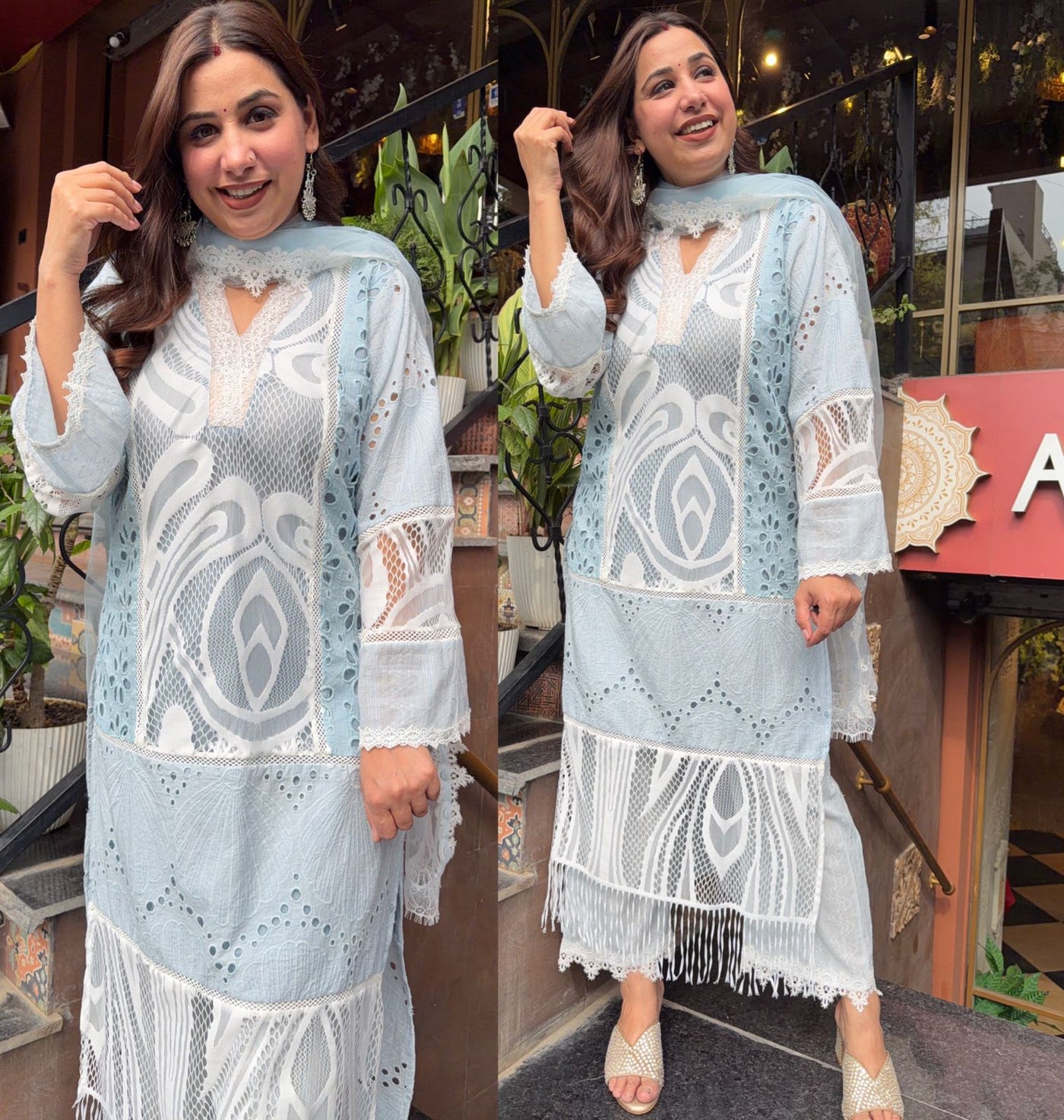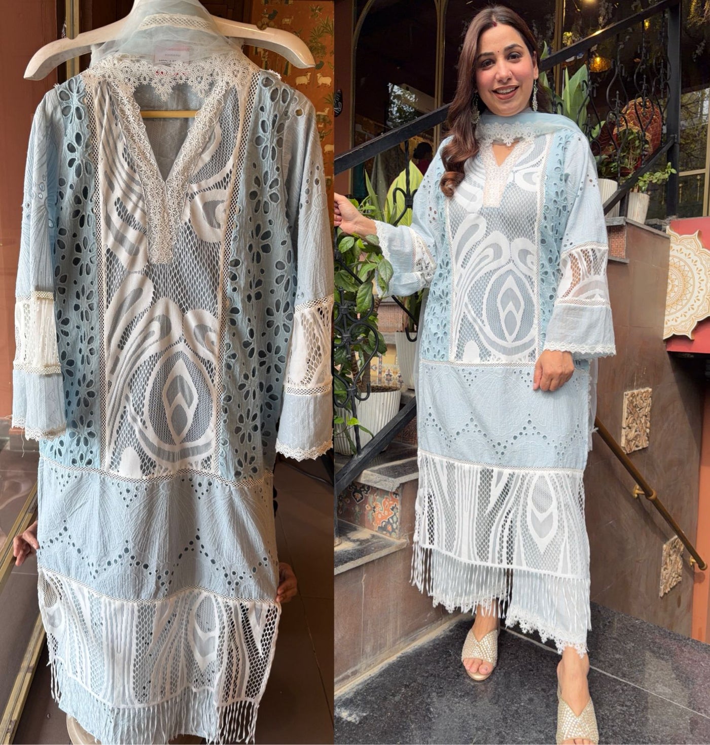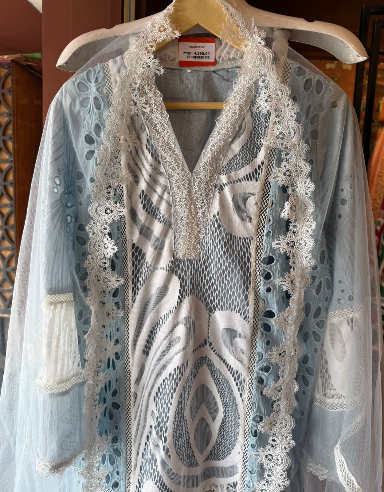 Powder Blue Designer Pakistani Set with Lace Overlay