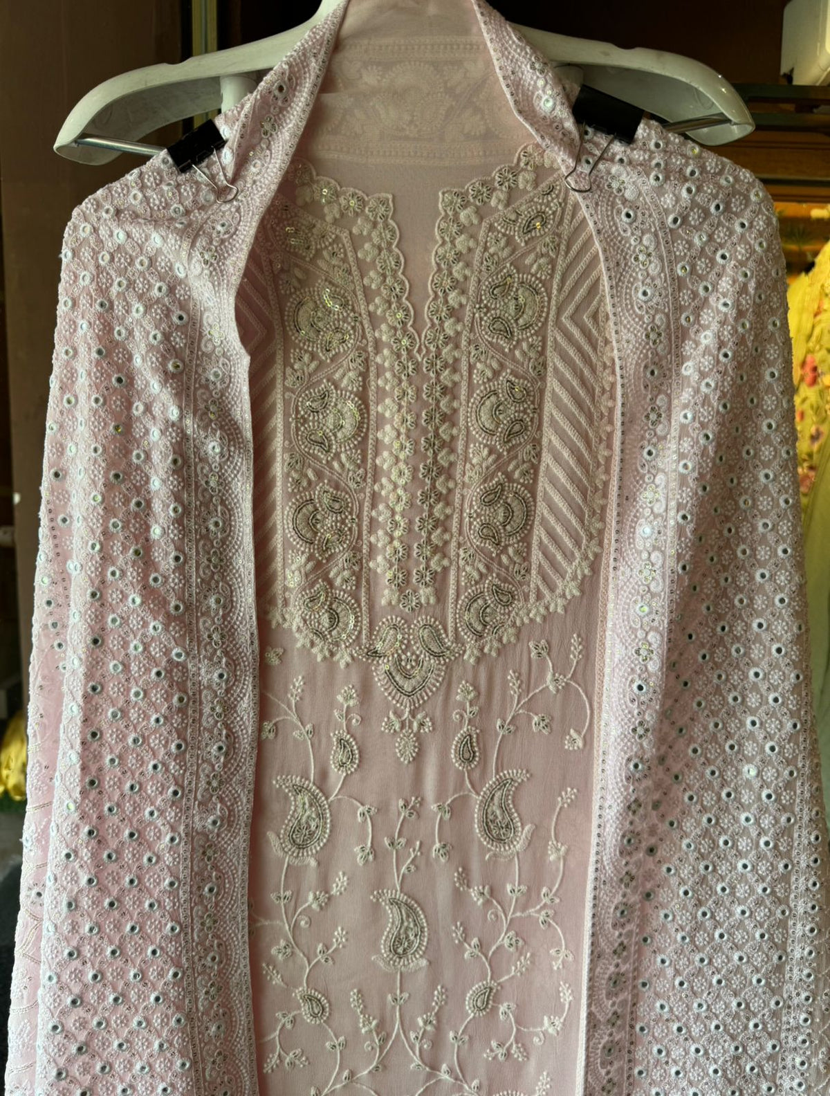 Pure Georgette Unstitched Shirt with Lakhanvi Thread embroidered front