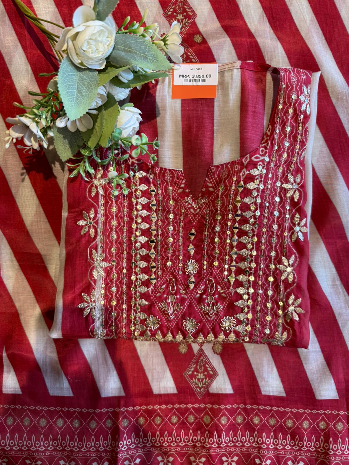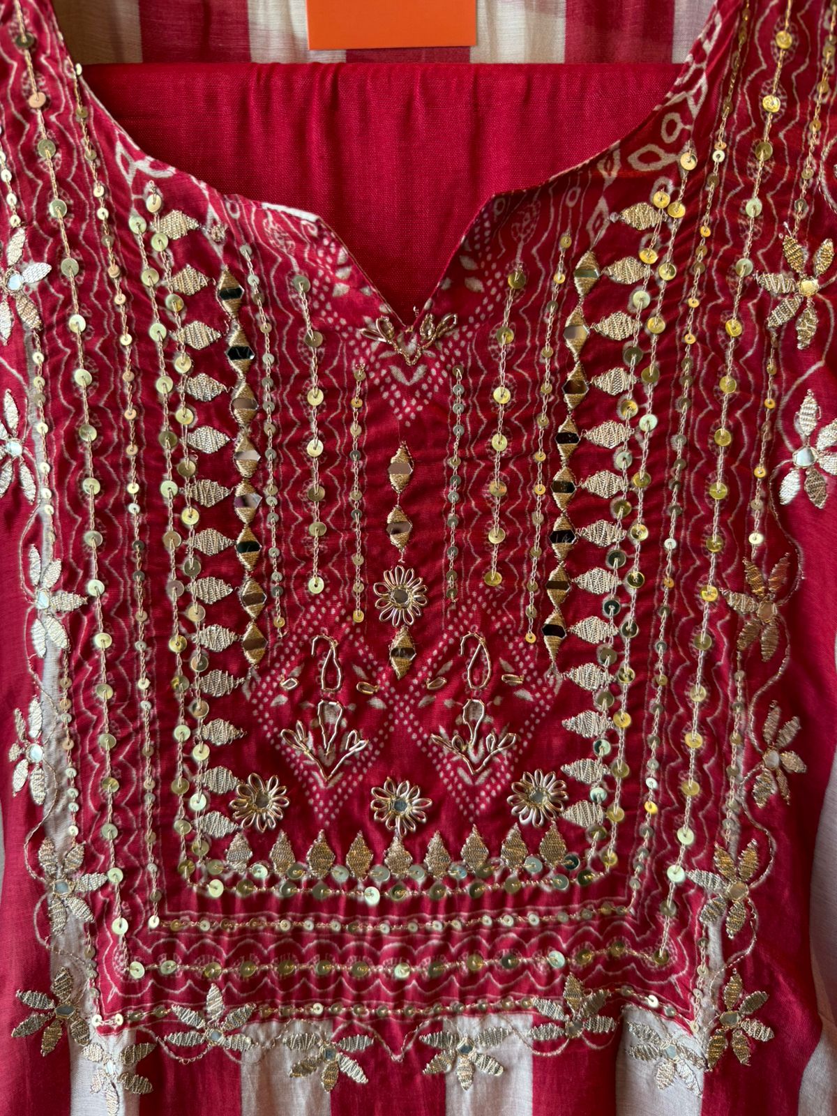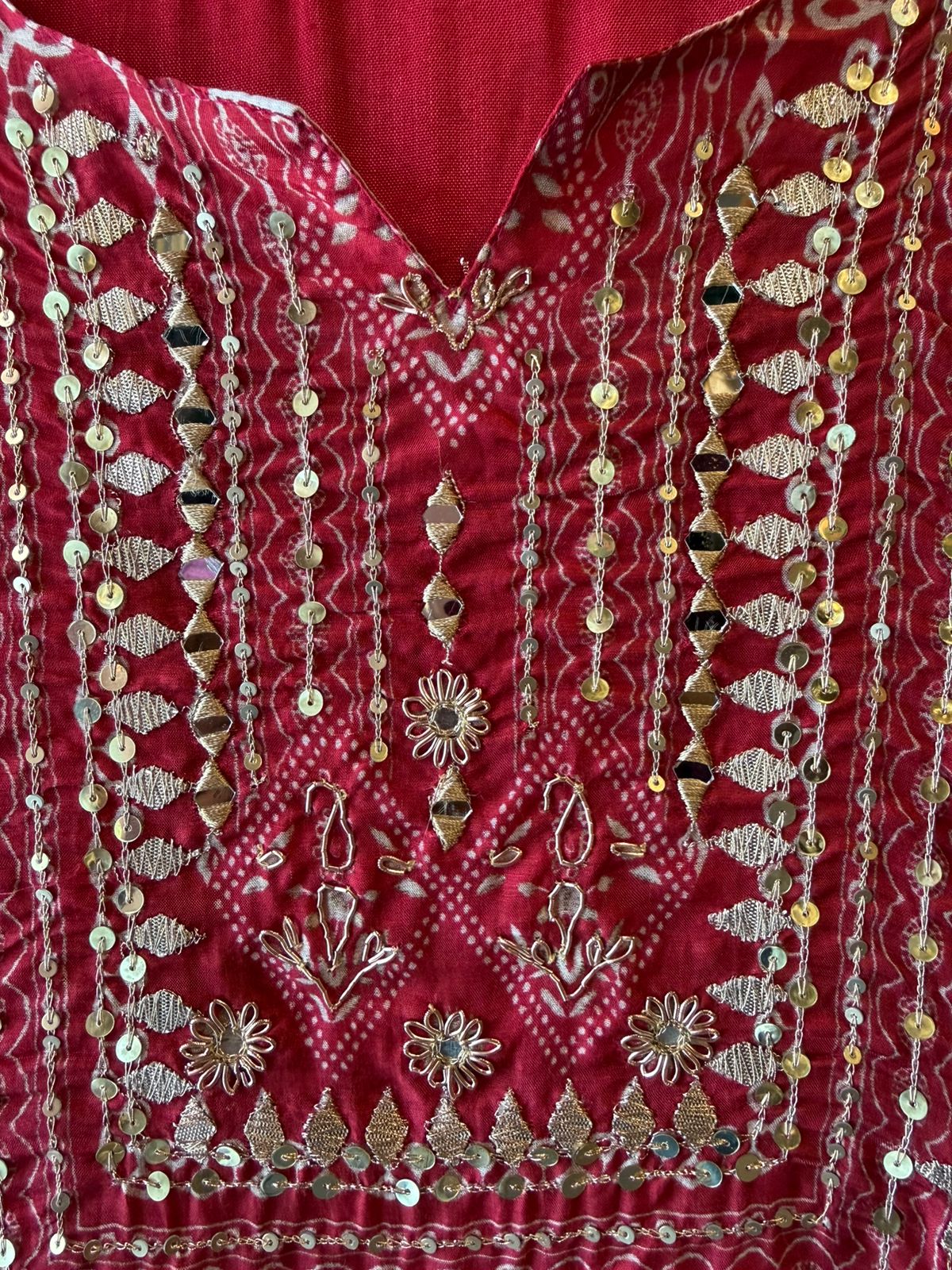 The neck is beautifully decorated with Sippi/Leather Patti’s/Embroidered with metallic wires.