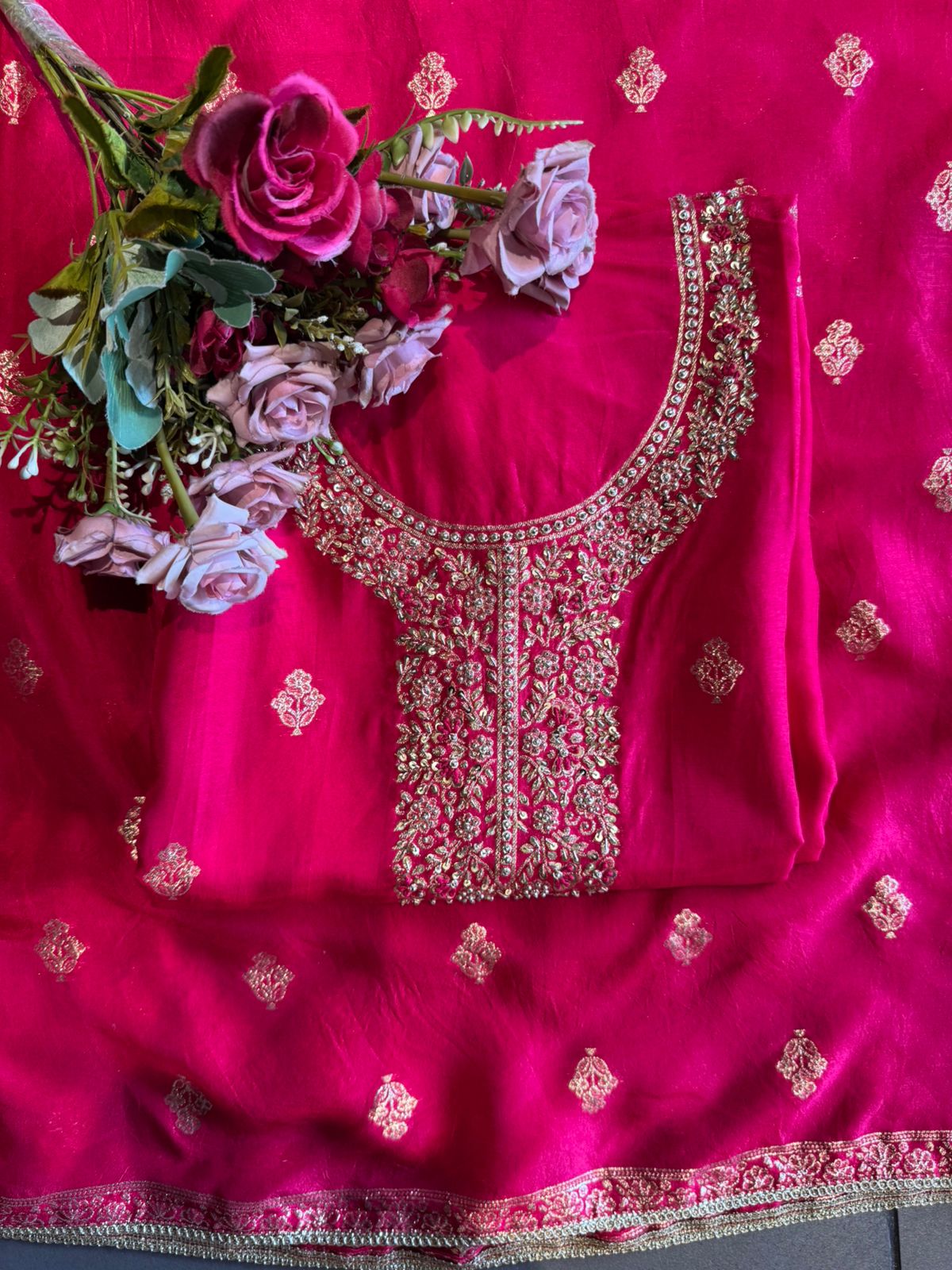 Stones/Beads embellished neckline with Dabka Kadhai and thread detailings