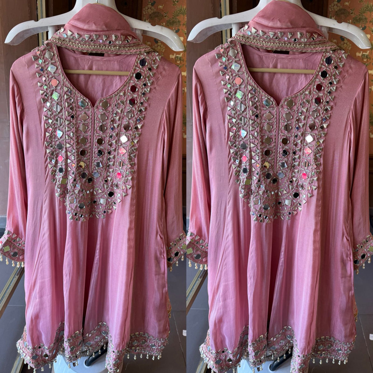 Shimmer Stitched anarkali set/Ethnic suit set with heavy mirror work.