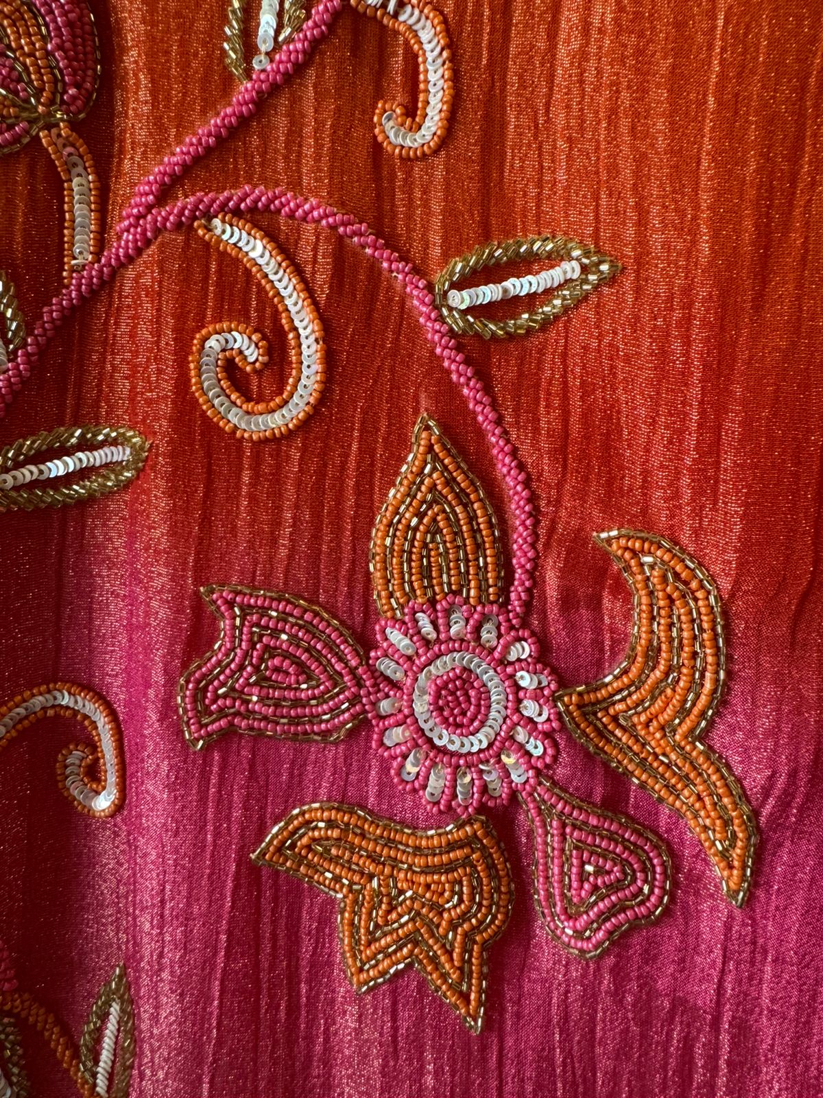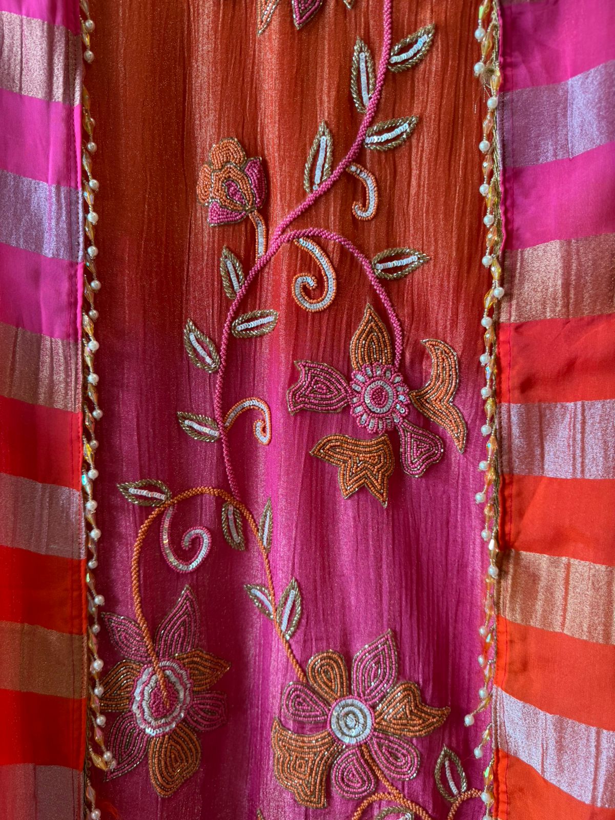 Ombre shaded banarsi weaving  tissue full size dupatta with Bead lace attached on the four sides border.