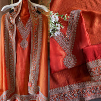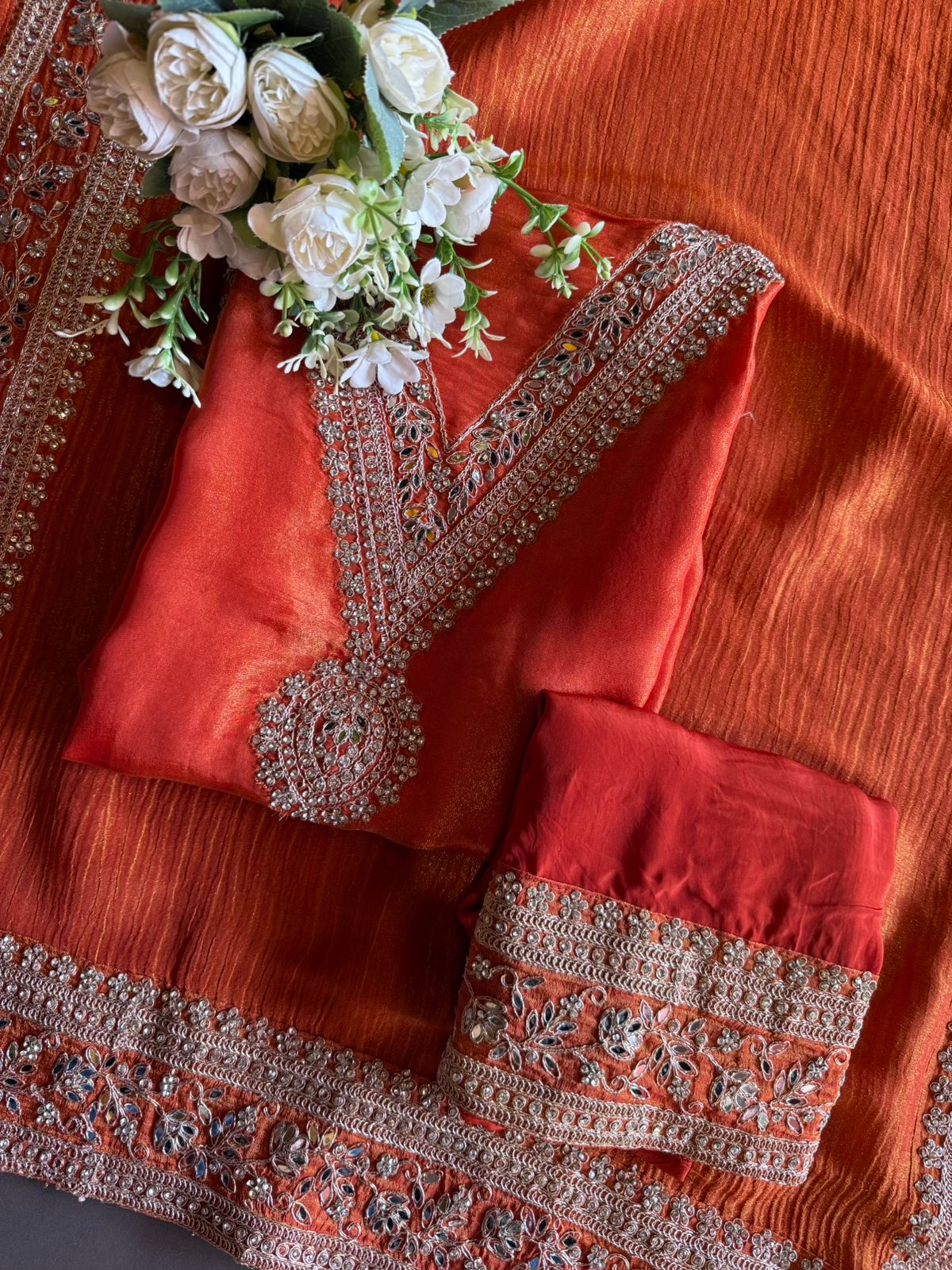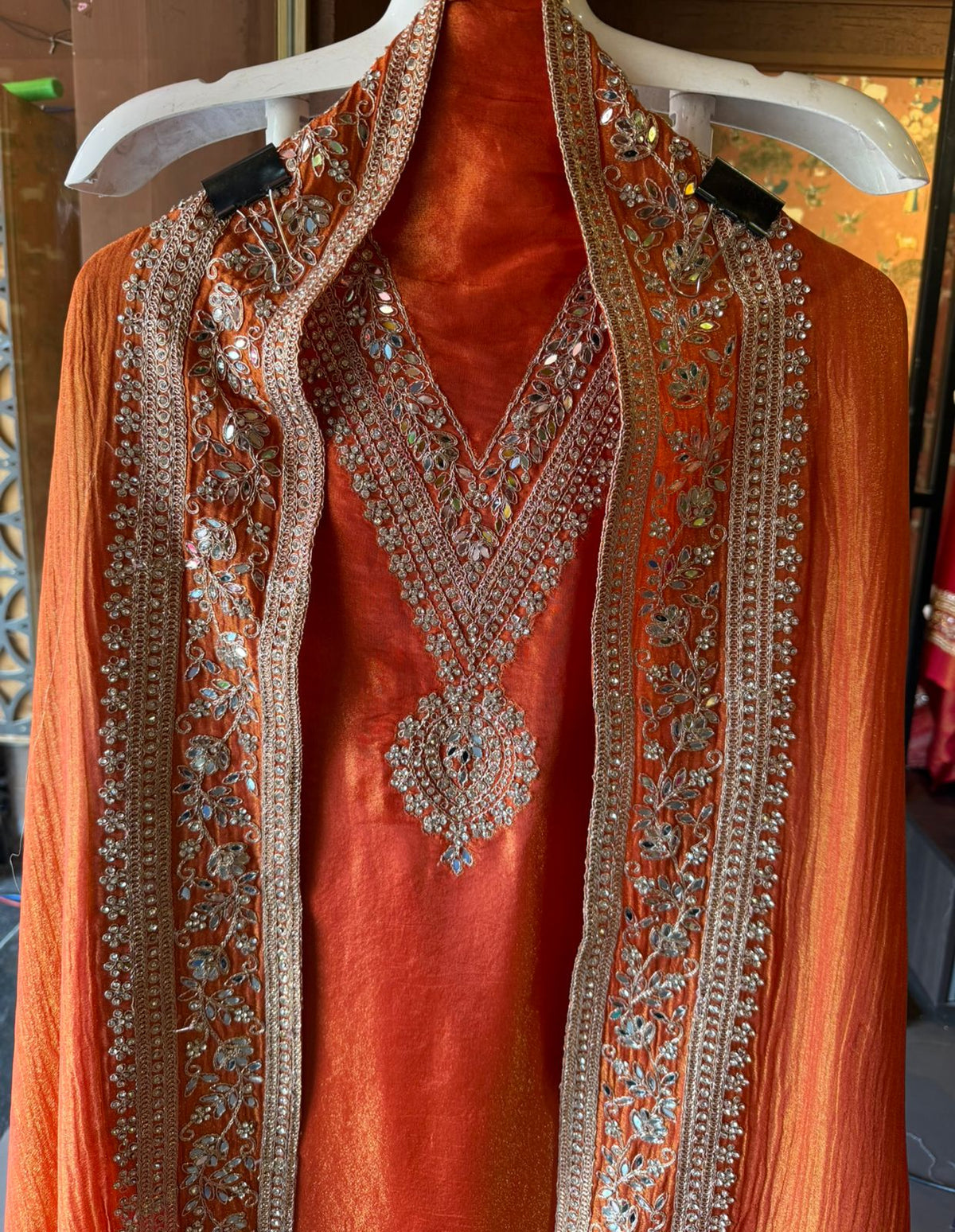Tissue dupatta 2.5 meters full in size with heavily embellished borders with stones, mirrors , Zari and Dori.