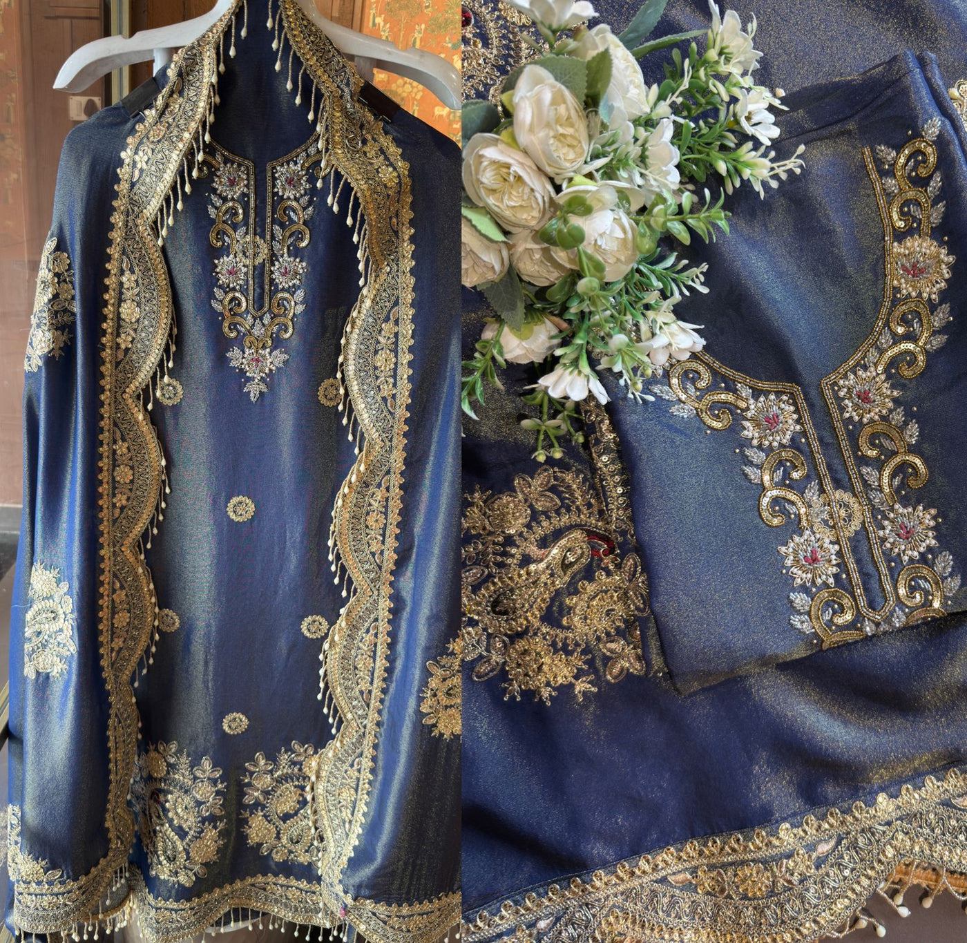 The neckline has embellished Silver dabka with Pearls & crystal beads