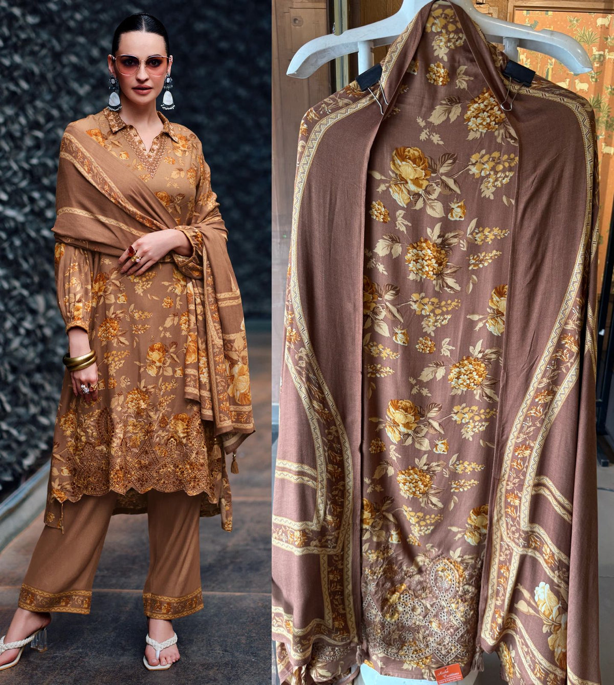Viscose pashmina printed with embroidery, The Pashmina Shirt is completely digitally printed (Front and back)