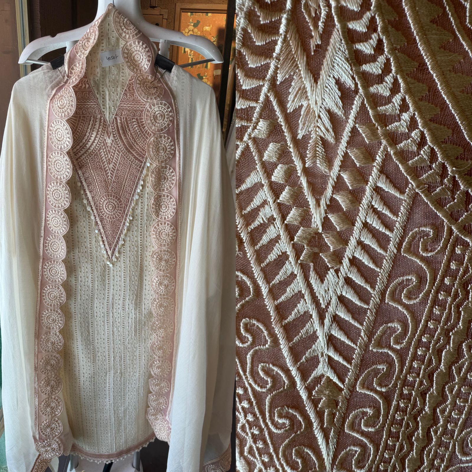 Beautiful summerish Mul cotton chicken suits with designer front with laces and thread embroidered (Copy)
