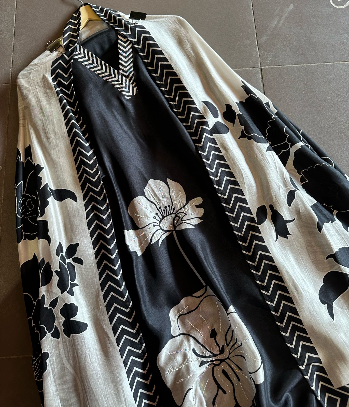 Pure mulberry silk unstitched shirt with very smart digital print with sequence highlights