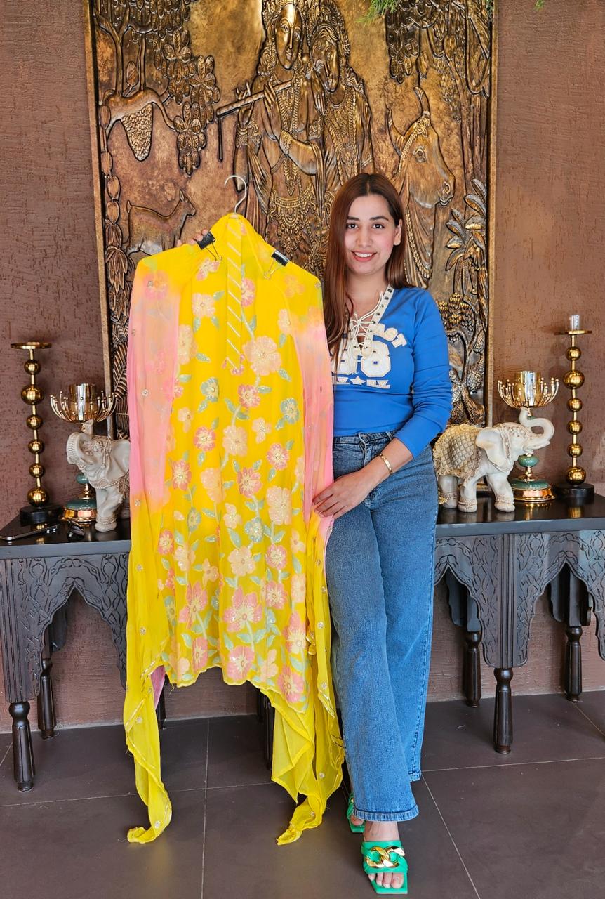 Georgette shirt with very beautiful sequence work on full shirt very neat and clean work.