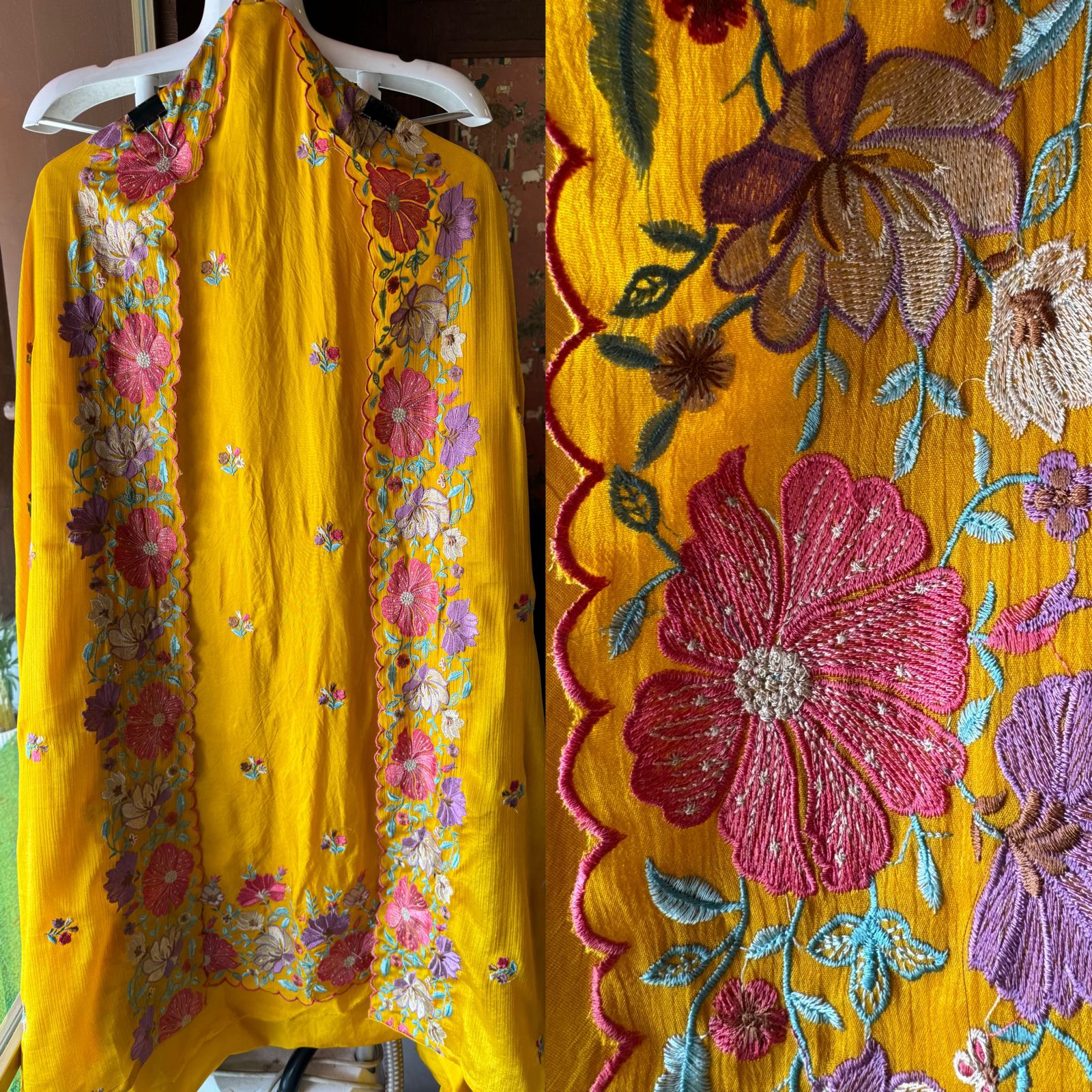 Very soft and full size Chinon  dupatta with two sides floral thread embroidery with soft scalloping
