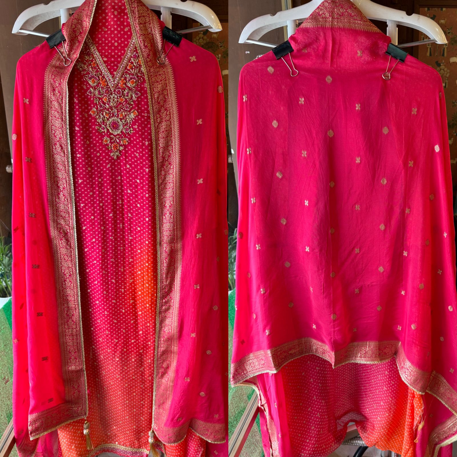 Organza Unstitched Kurta ombre shaded, with Banarsi booties overall the shirt front & back