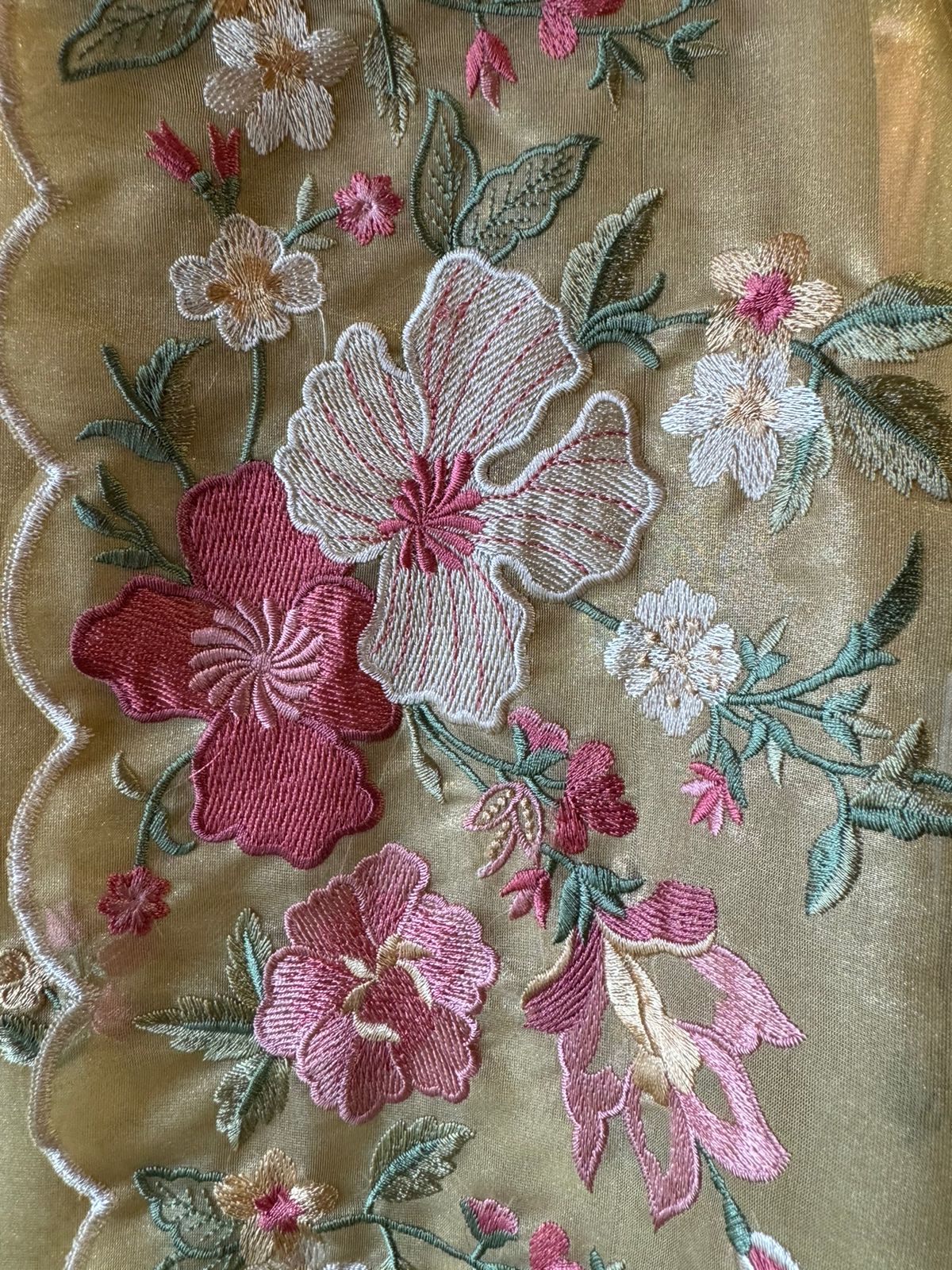 Very soft and full size organza dupatta with two sides floral thread embroidery with soft scalloping