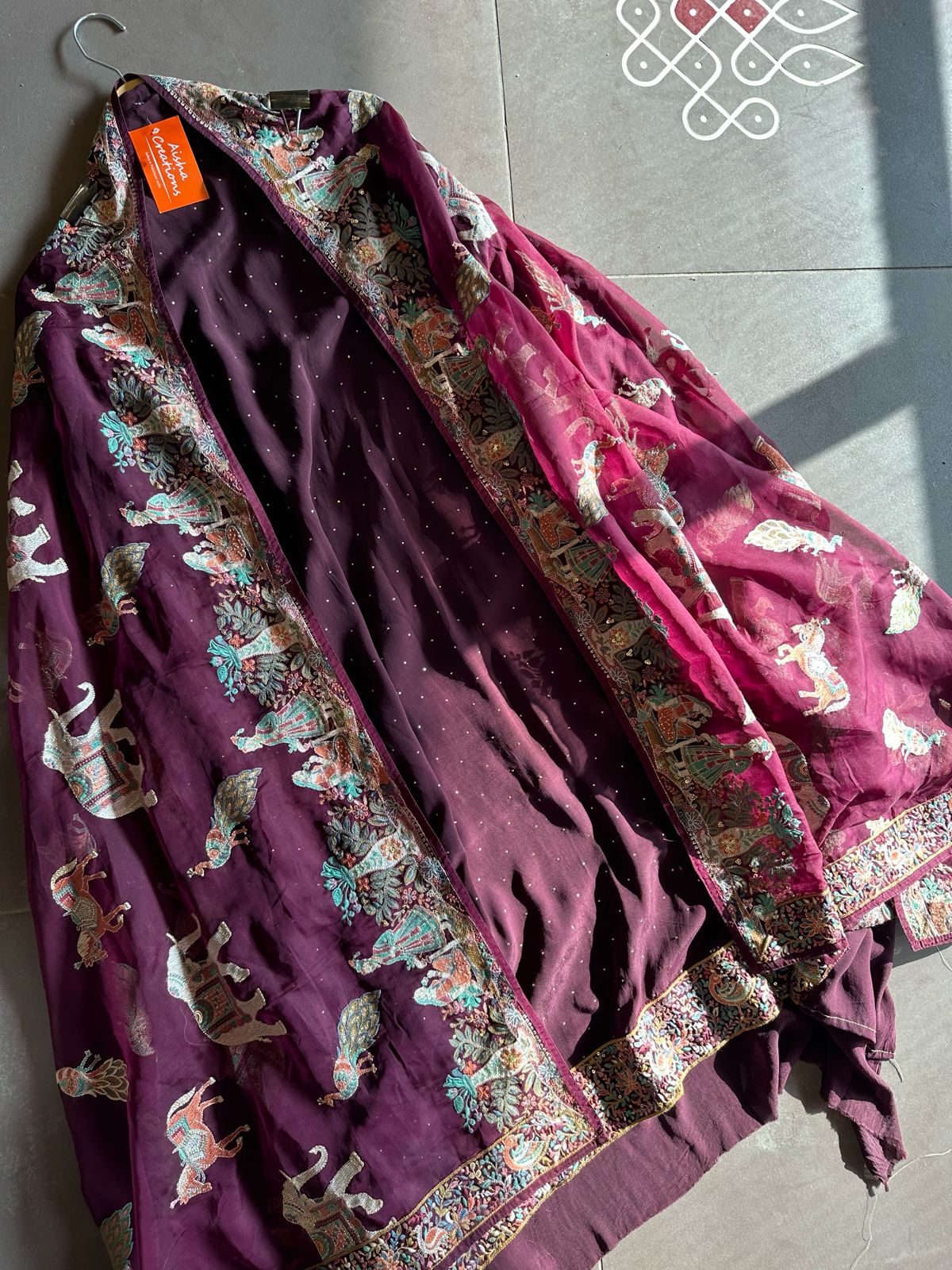 Pure Crepe silk shirt with complete swaroski highlights and a beautiful thread embroidered border