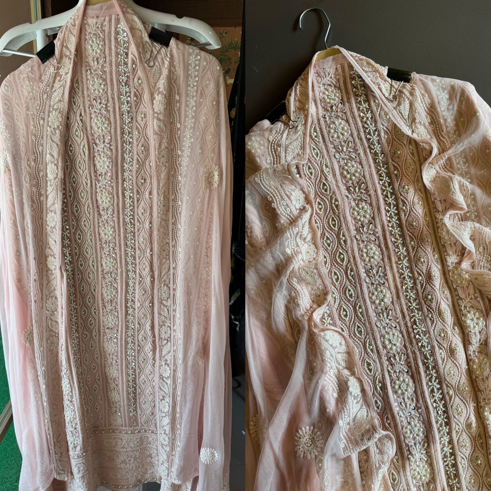 Pure Georgette Suits with Handwork done (Pearl work) with Pure chiffon embroidered Dupatta