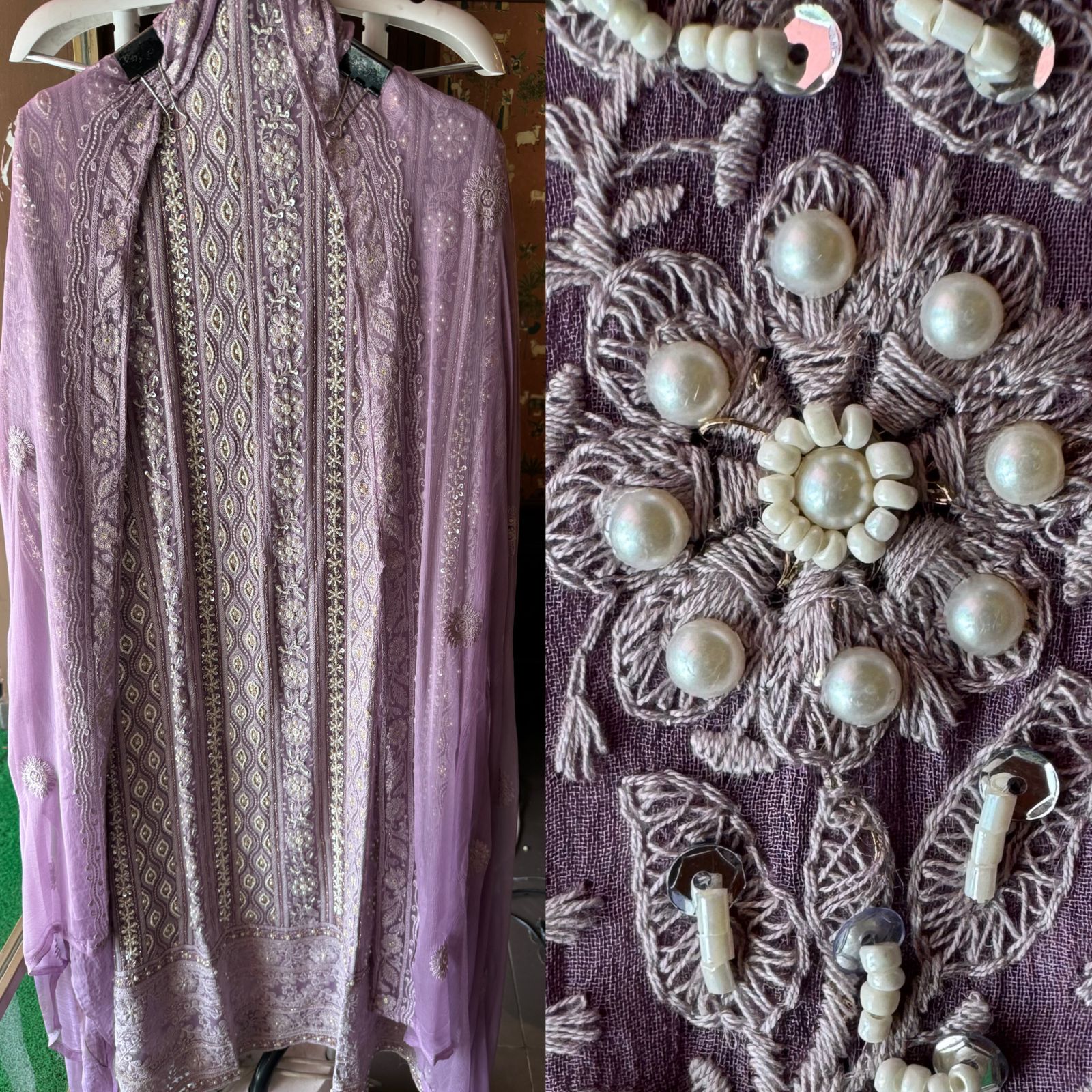 Pure Georgette Suits with Handwork done (Pearl work) with Pure chiffon embroidered Dupatta