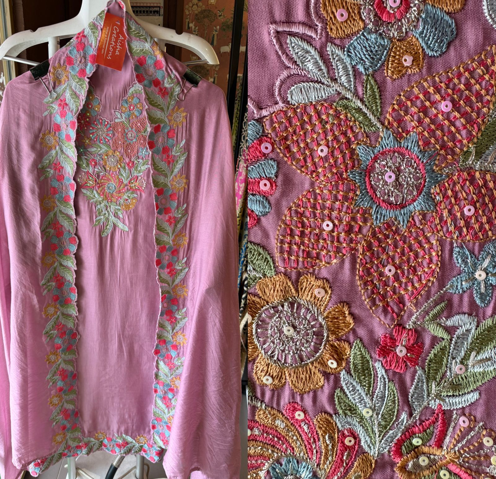 Pure jam cotton Unstitched full size shirt with thread embroidered neckline with sequence highlighting