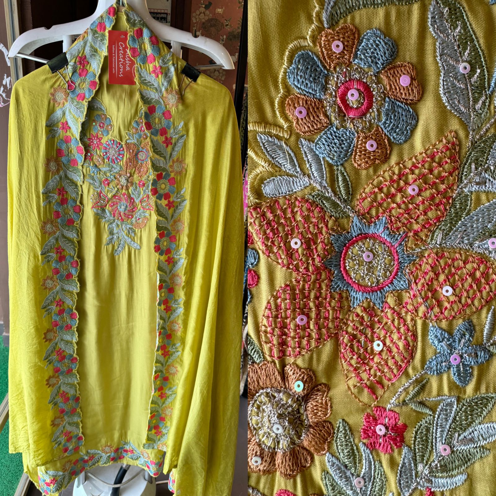 The ghera has also thread embroidery.
