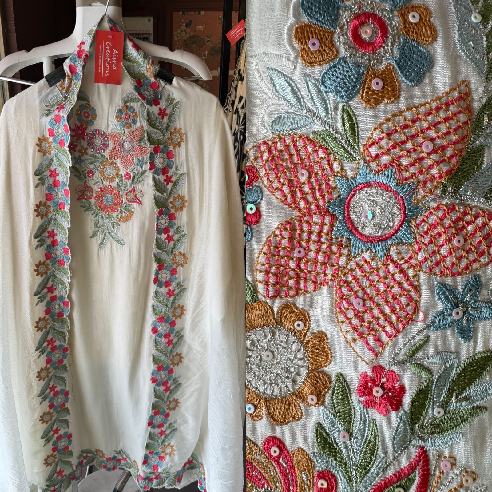 Pure jam cotton Unstitched full size shirt with thread embroidered neckline with sequence highlighting