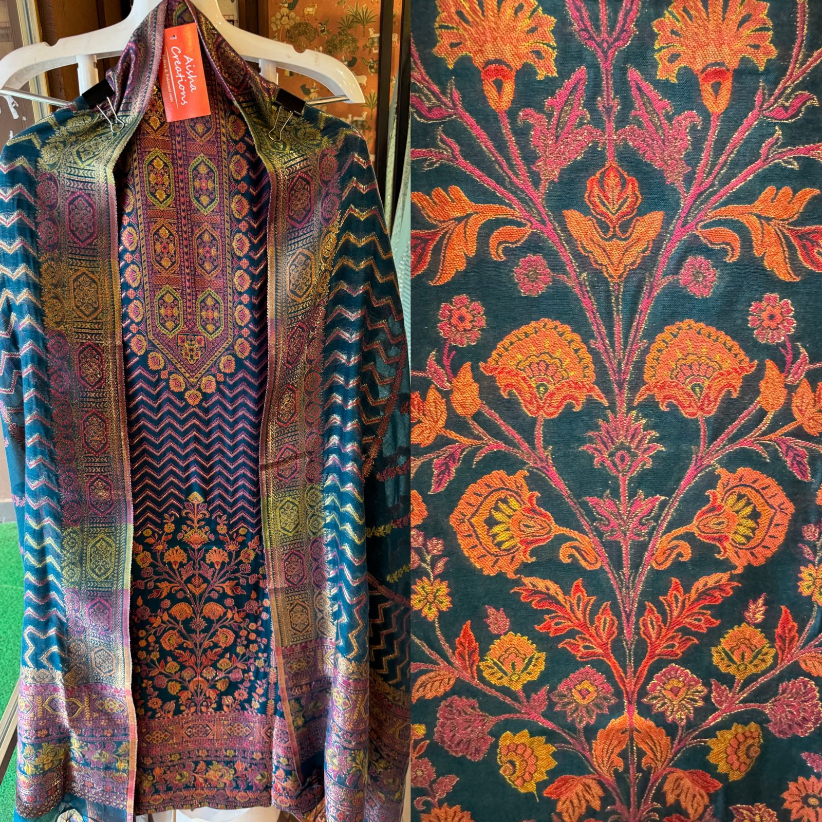Pure jamdaani cotton Silk Suit pieces with beautiful Thread weavings all over the shirt front and back