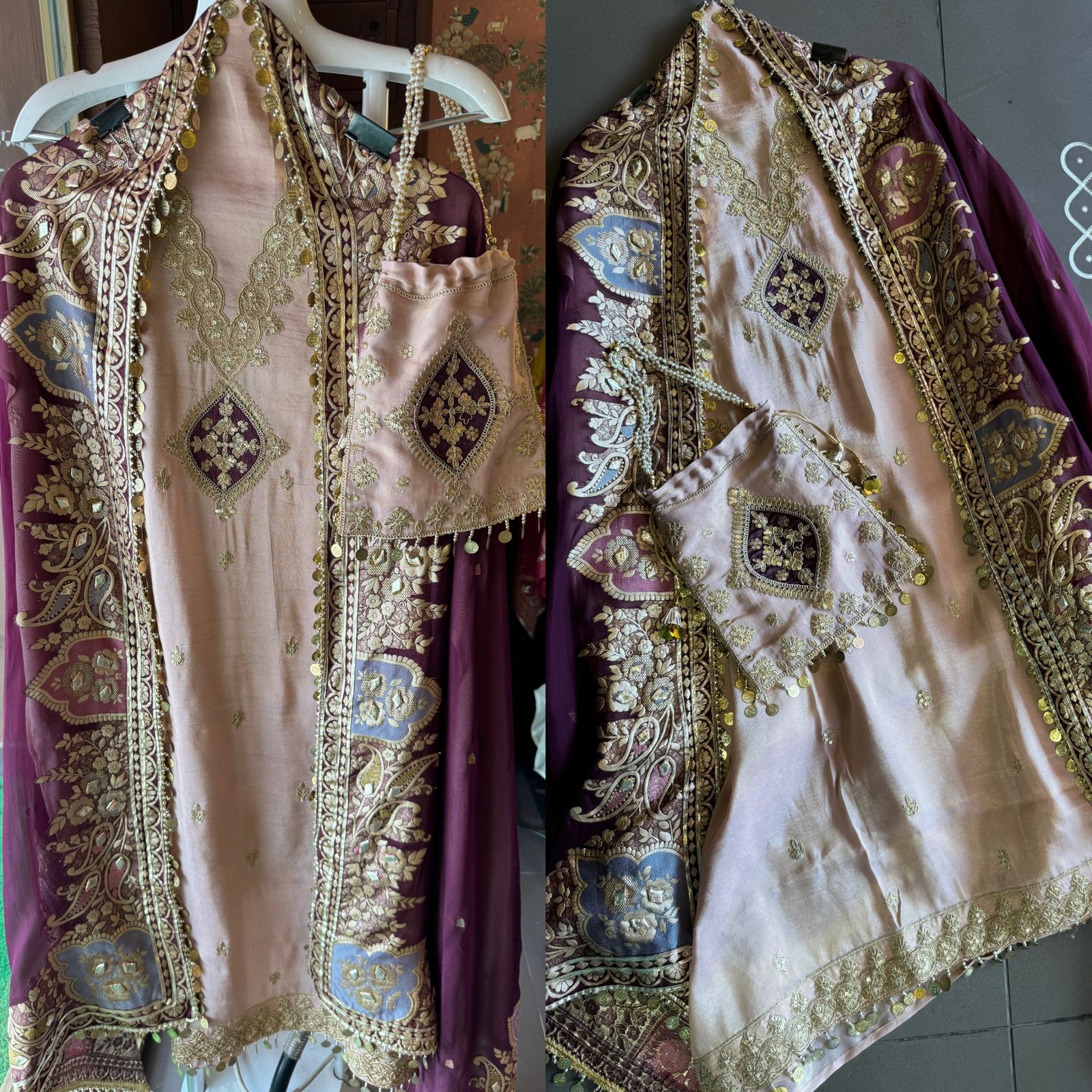 Pure organza silk zari weaving booties unstitched Shirt with very gorgeous neckline made from Dori zari and dabka work