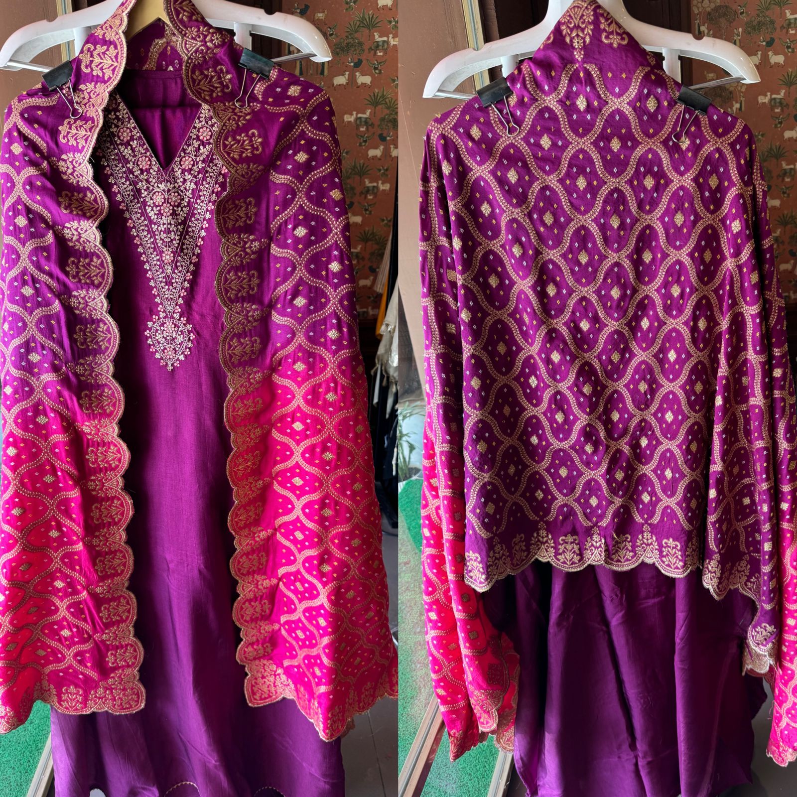 Pure Silk Unstitched Shirt with Beautiful Dori Neckwork with sequence and zari detailings as well