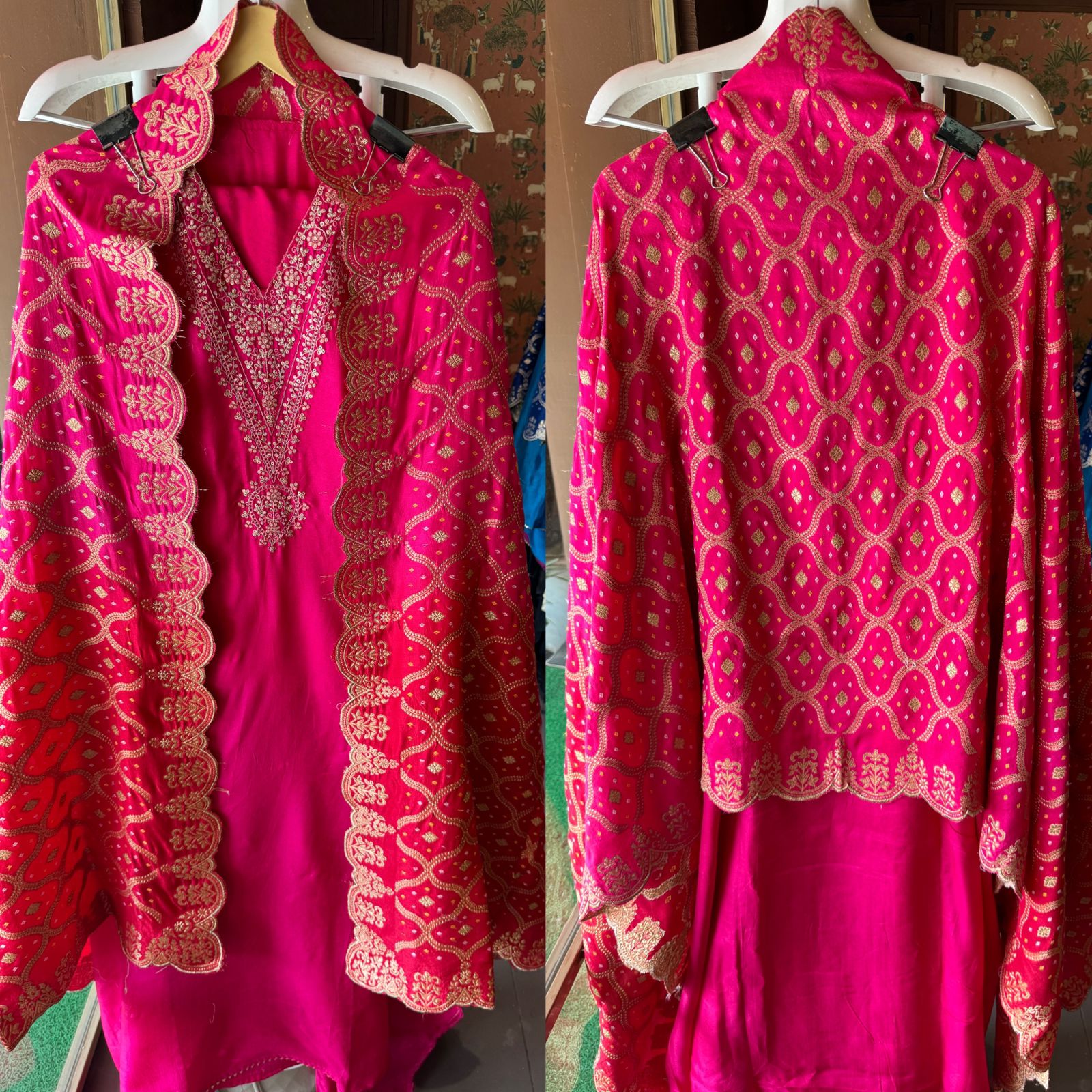 Pure Silk Unstitched Shirt with Beautiful Dori Neckwork with sequence and zari detailings as well