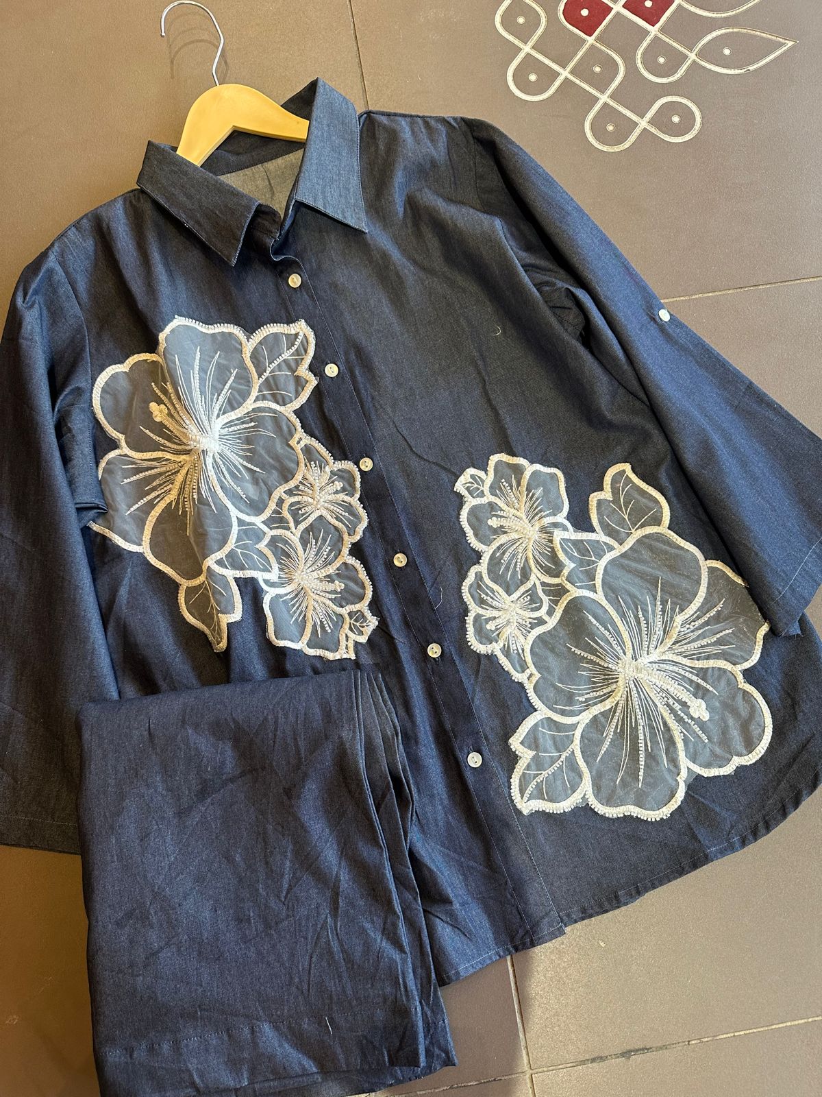 Pure tensil denim (Linen denim) stitched coord , Very smart and has a very comfortable fit as well.