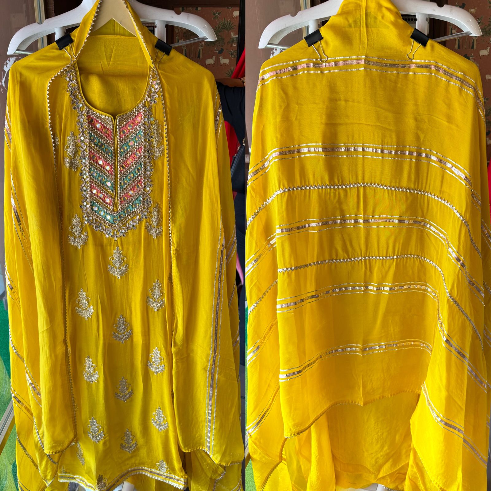 Soft organza Unstitched shirt with heavily embroidered zari bootas with leather gotta work