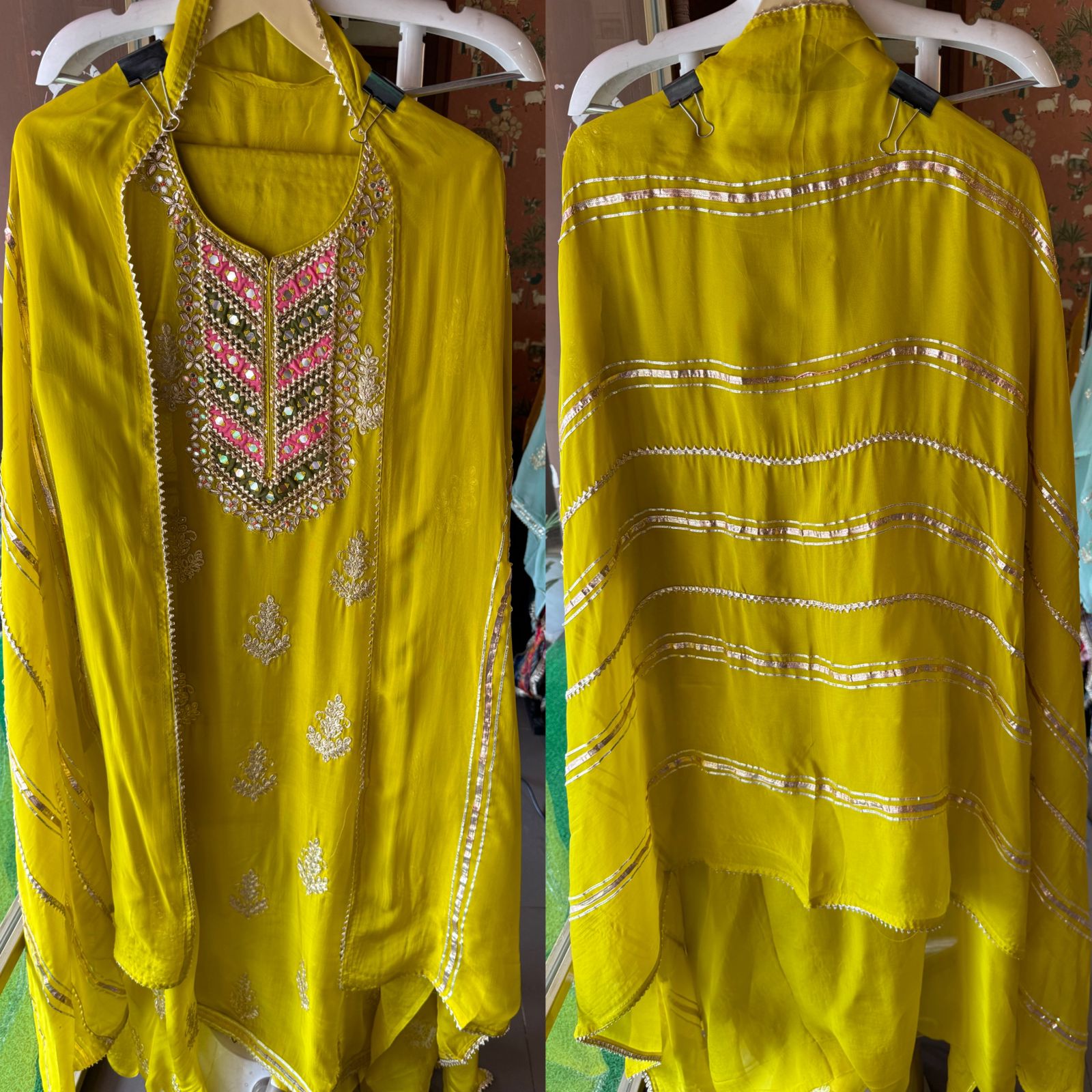 Dori and mirror hand embroidery on the neck.